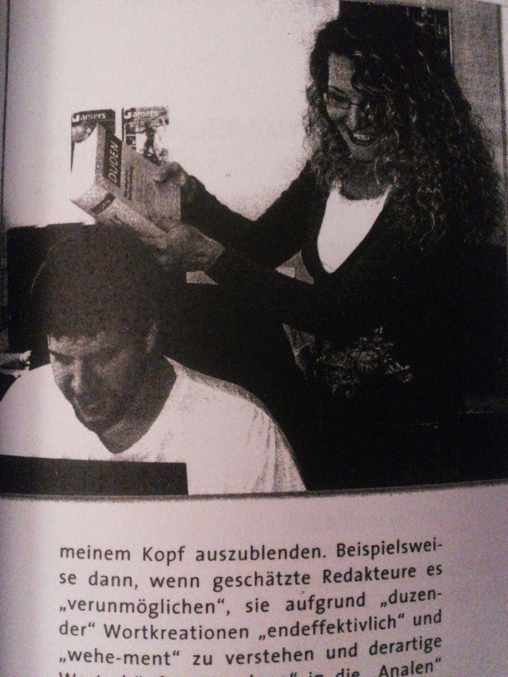 Natürlich handelte es sich bei den hier aufgeführten Beispielen nicht nur um meine Fehltritte (vielleicht aber auch doch). Somit fiel die Wahl für das „ich hau dich mit einem Duden-Foto“ auch nur mit mir umgesetzt, weil ich gerade Zeit hatte für so ein Späßchen (vielleicht aber auch nicht nur deswegen).