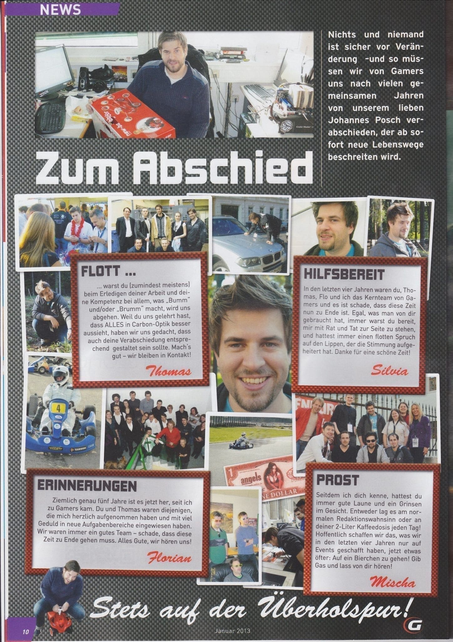 Aber es gibt noch etwas, dass ich Gamers.at maßgeblich zu verdanken habe: Heute meinen Traumjob zu haben. Als ich Ende 2012 unfreiwillig den damals aktiven consol.MEDIA Verlag verlassen musste (unten übrigens die Seite, die die Kollegen heimlich ins Heft geschummelt haben), fand ich bald im Folgejahr einen Job in einer digital-Marketing-Agentur – weil sie jemanden mit Gaming-Background gebraucht haben. Das wiederum half mir unglaublich bei meinem Studium der Kommunikations-Wirtschaft, bei dem ich durch meine Arbeit dann sogar Gastlektor für meinen eigenen Studienjahrgang hätte werden sollen. Und dann – als in einem österreichischen Automagazin jemand gesucht wurde, der Erfahrung im Journalismus und vor allem digitaler Kommunikation hat, war ich auch schon „the obvious choice“.