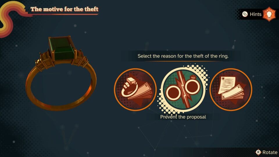 Die 3D Grafik ist höchst stimmig und bringt das typische 70er Flair super herüber. Die Musik ebenso wie die Kleidung und die Frisuren erinnern an die große Zeit von ABBA, Hippies und Schlaghosen. Wirklich gut gemacht. Wir steuern Hercule aus der Third-Person Perspektive durch die Gegend und können mit bestimmten Hotspots interagieren. Wir reden mit anderen Personen, öffnen Türen oder Safes. Es gibt Sammelobjekte zu finden. Das Spiel ist relativ textlastig. In voll vertonten Gesprächen unterhalten wir uns mit den anderen Figuren der Handlung, und müssen sogleich die ersten Denksportaufgaben lösen. In einem Notizbuch über die verschiedenen Charaktere müssen wir im Multiple Choice Verfahren (aus einer relativ langen Liste…) den Vornamen, Nachnahmen, Beruf und eine Besonderheit der jeweiligen Person auswählen – was Anfangs noch recht einfach ist (einfach das Transkript des vorherigen Gespräches lesen), bald jedoch ein wenig komplexer wird. Später haben wir oft erst nach mehreren Kapiteln alle Informationen über eine Person beisammen, die teilweise nicht nur in Gesprächen sondern auch durch Beobachtungen aufgedeckt werden müssen.