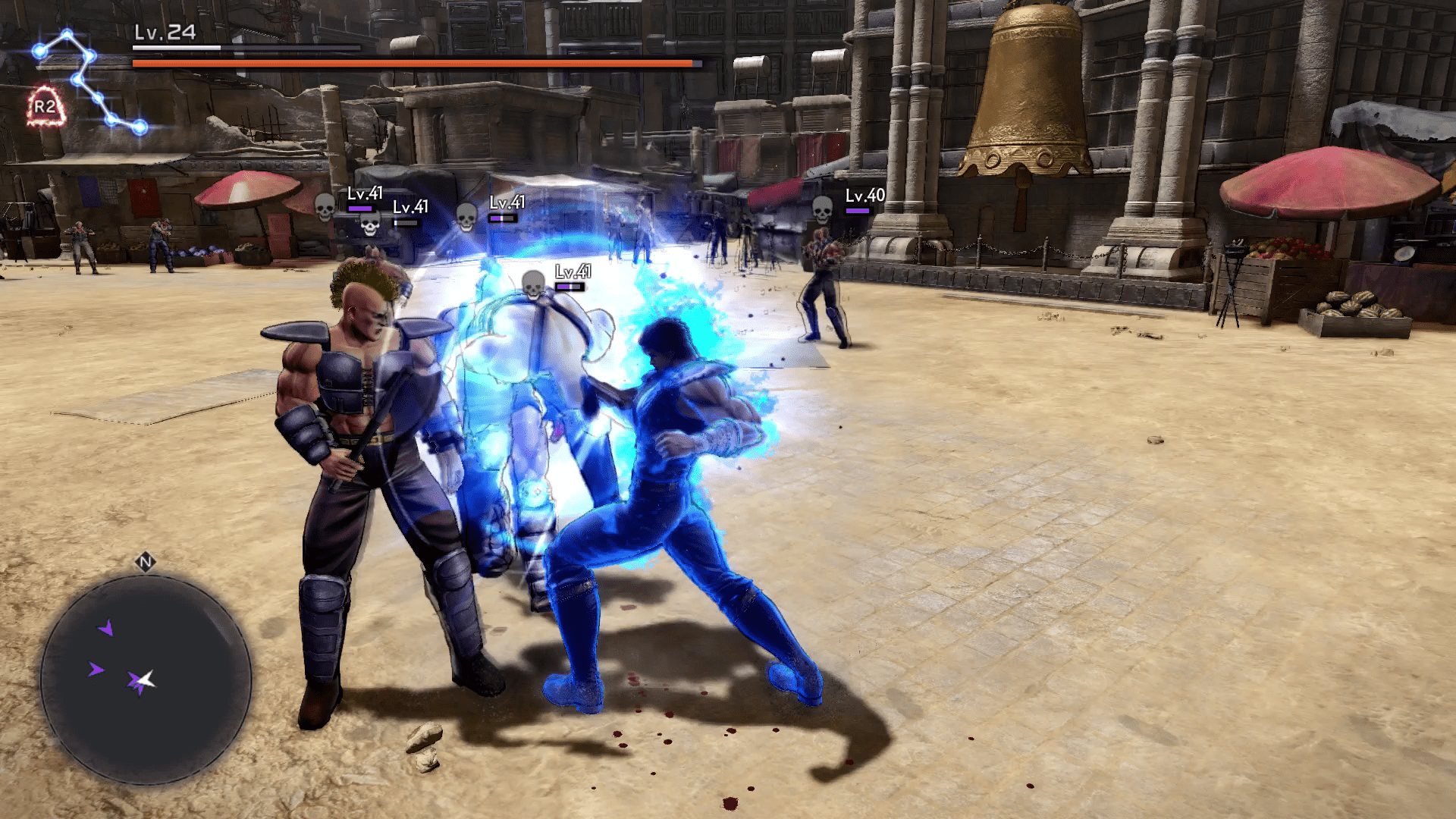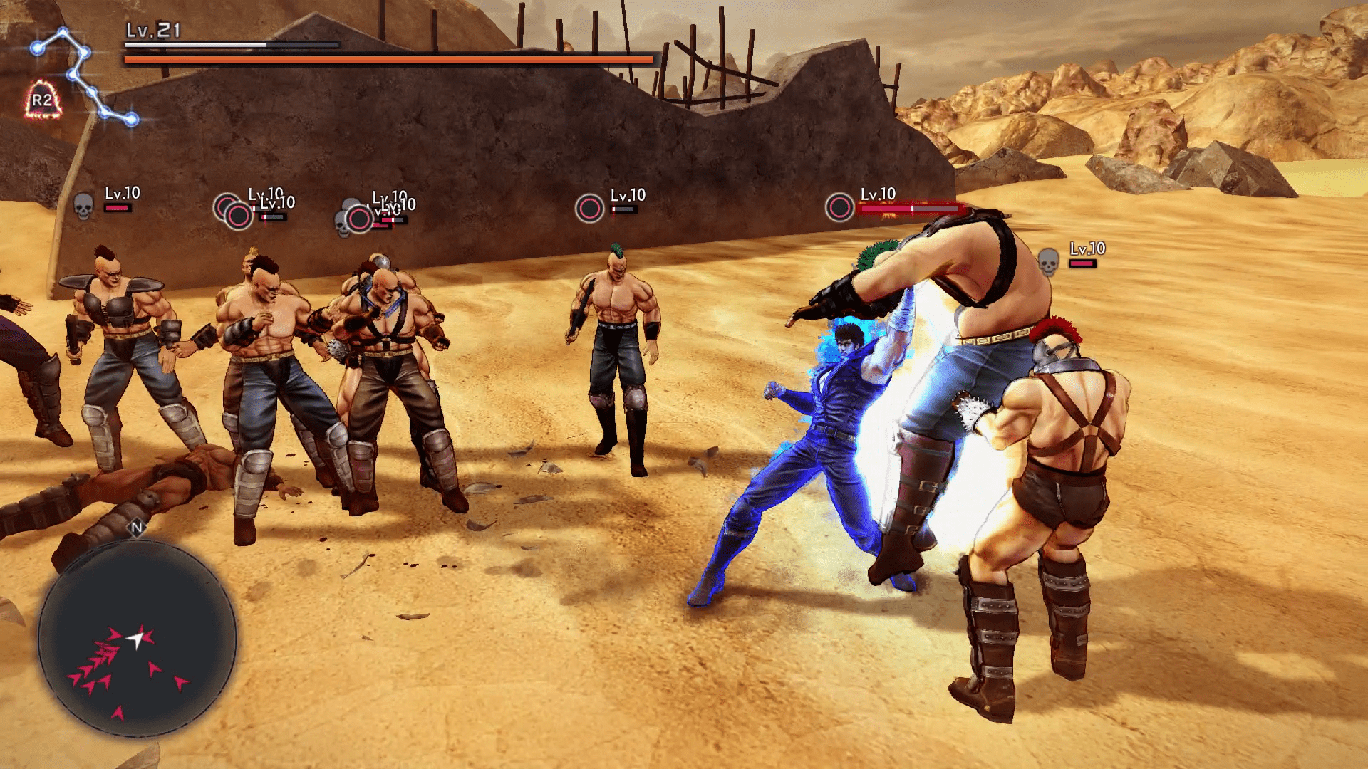 Wer die Yakuza-Spiele kennt, wird nicht lange brauchen, um die enge Verwandtschaft zur Reihe zu erkennen. Zwar ist die Welt von Lost Paradise größer (mehr Open-World als Open-City), Spielprinzip und diverse Mechaniken ähneln sich aber doch gewaltig. Hier wie dort wird die Story in ausufernden Gesprächen und Zwischensequenzen erzählt, die dann üblicherweise in ausschweifenden Martial-Arts-Schlägereien enden. Die sind, ebenso wie bei Yakuza, das Herzstück des Games, was aber hier doppelt gilt – denn eben die spezielle Kampfkunst von Kenshiro ist ein essentieller Bestandteil der Vorlage. Als Meister der Hokuto Shinken Schule, kann er nämlich, allein durch Berührung mit nur einem Finger, jemanden qualvoll töten, oder auch heilen. Umgesetzt wird dieses Prinzip ähnlich wie die sogenannten Heat-Actions in neueren Yakuza-Titeln. Durch das Verprügeln von Gegnern füllt sich ein Balken, was einem dann erlaubt, diverse Special Moves auszuführen. Von diesen gibt es unzählige, da der ausgeführte Angriff nicht nur von des Spielers Controller-Eingaben abhängt, sondern auch von der direkten Umgebung.