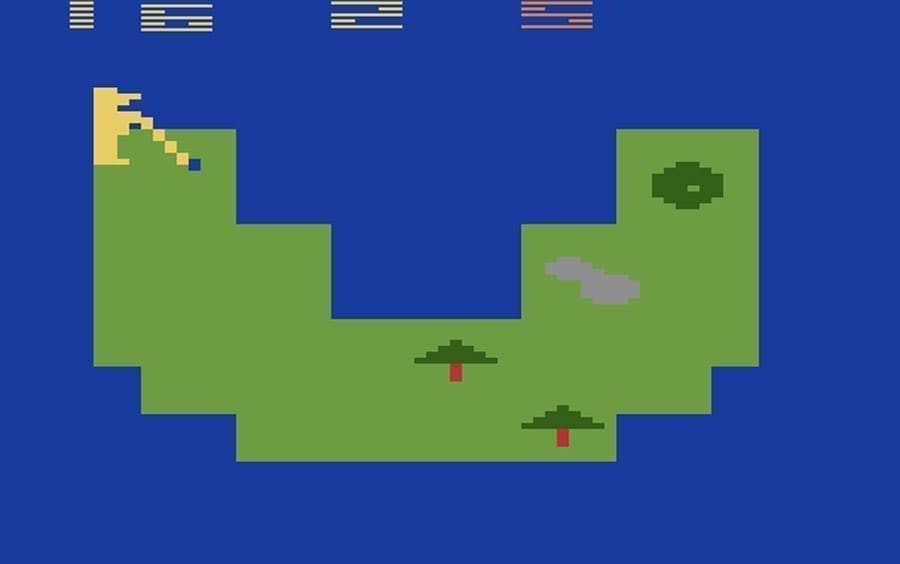 Für den Atari 2600 erschien mit Golf 1980 bereits die quasi erste Golfsimulation von Atari, bei der es möglich war auf 9 Löchern mit einem oder 2 Spielern Golf zu spielen. Das Ganze war grafisch noch sehr einfach gehalten, auf der grünen Spielfläche waren das Loch und auch einige Hindernisse wie Bäume, Sandbunker und Wasser abgebildet wo man den Golfball vorbei zum Ziel bugsieren mußte.