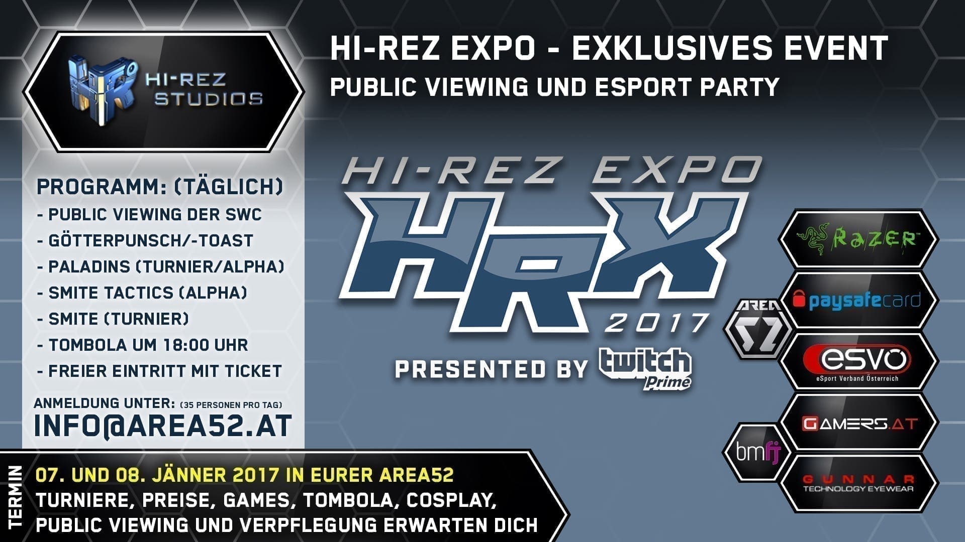 Anfang 2017 startet die Hi-Rez Expo in Atlanta, in Kooperation mit den Hi-Rez Studios veranstaltet die AREA52 eine exklusive, zweitägige, Public Viewing und eSport Party. Ein ausgiebiges Rahmenprogramm mit Turnieren, Verlosungen und speziellen Preisen erwartet euch an diesen zwei Tagen in Wiens bester Gaming Lounge.