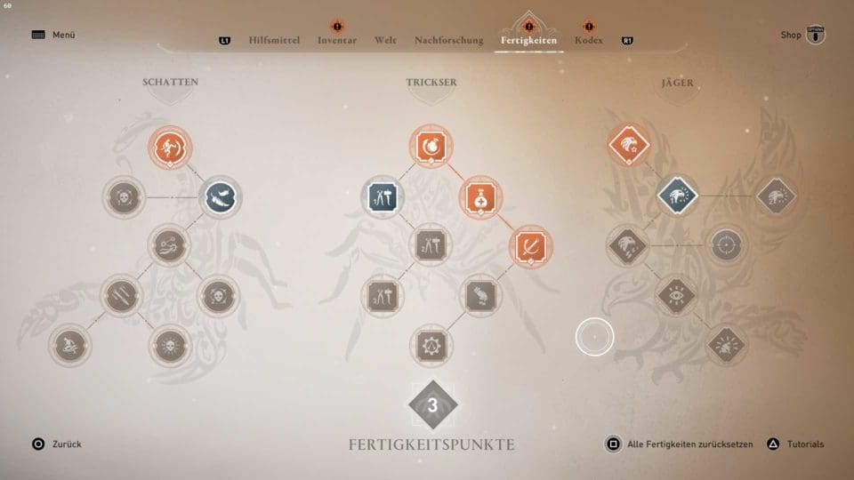 Aber wir können Basim im Zuge der Geschichte auch stärker machen, indem wir unsere sauer verdienten Skillpunkte in 3 versch. Fertigkeitenbäume stecken. Anders als in den vorigen Teilen sind diese von den Möglichkeiten überschaubar und verbessern unseren Meisterattentäter in Bereichen der Akrobatik, des Kampfes bzw. auch der Übersicht in dem wir unserem Adler ein besseres Ausspähen der Umgebung ermöglichen.