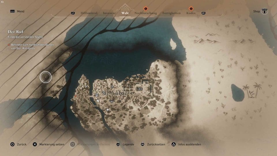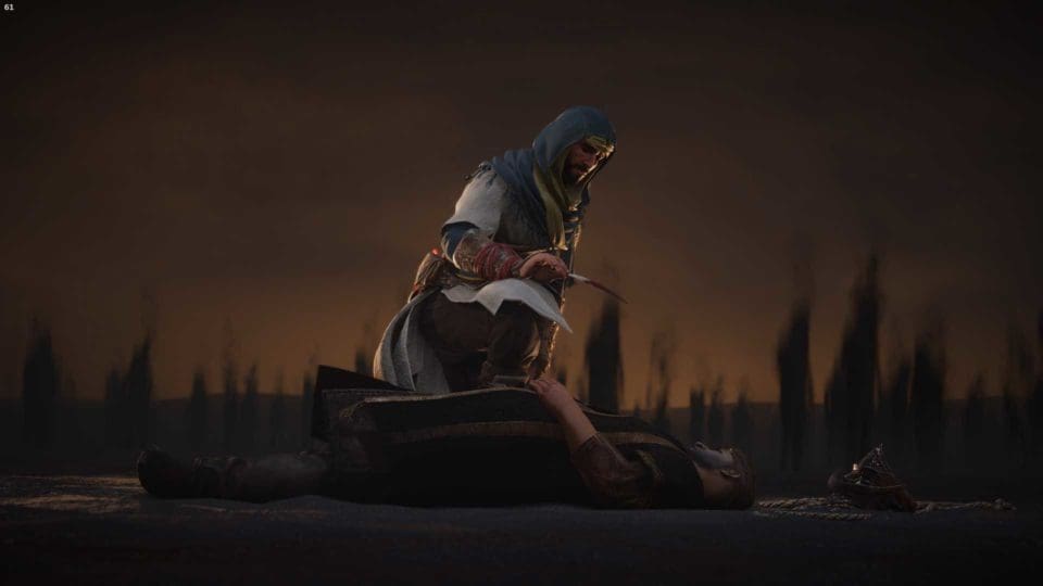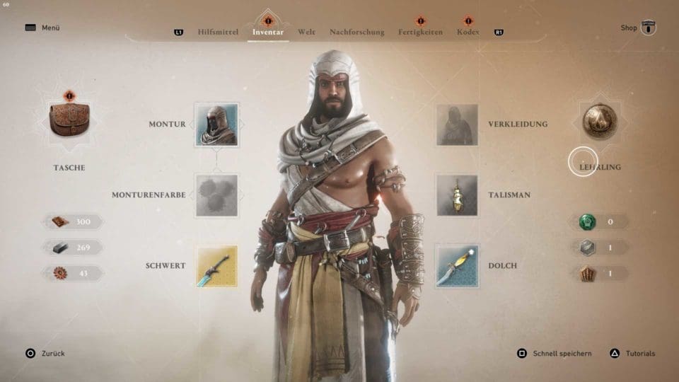 Hat man sich in Valhalla und den vorigen Teilen der Reihe noch durch Gegnerhorden metzeln können, schreiben die Entwickler bei Mirage wieder groß „Schleichen kann Ihr Leben retten“ auf die Packung. Und das ist gut so, machte es doch anfangs den Charme der Serie aus. Sich wohlüberlegt an die Gegner heranzutasten, zuerst mittels Adler Enkidu in luftigen Höhen die Gegend auszukundschaften um dann aus dem Hinterhalt eine Wache nach der anderen zu erledigen. Das fühlt sich gleich zu Beginn richtig gut an und erfordert wieder etwas Einarbeitung. Bewaffnet sind wir nämlich nur mit Dolch und Schwert, etwas später können wir sog. Hilfsmittel wie Wurfmesser, Rauchbomben, Blaspfeile und Fallen freischalten. Diese können wir durch das benötigte Material, welches wir in Truhen finden, oder als Belohnung bekommen, auch aufrüsten, genauso wie unsere Montur, die Waffen oder eben unsere Hilfsmittel.