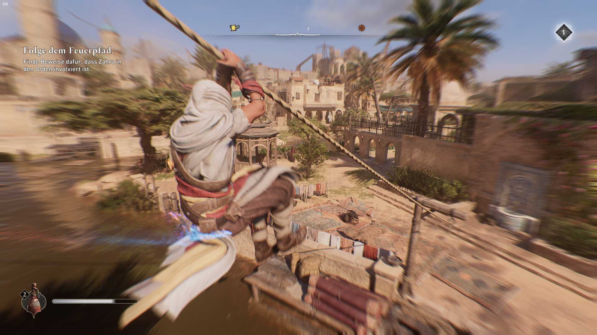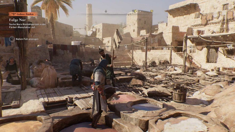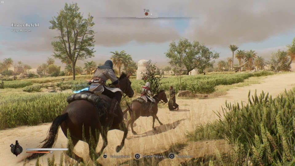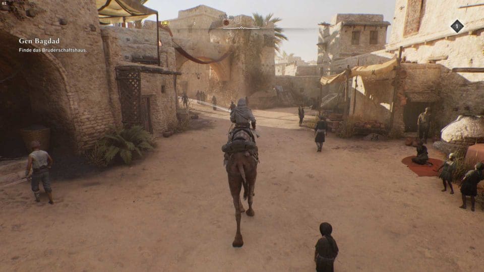 Nach unseren Lehrstunden im versteckten Camp der Verborgenen werden wir auch schon zu den ersten Missionen nach Bagdad und Umgebung geschickt, die Gegend lässt sich dabei per Kamel oder zu Fuß erkunden.