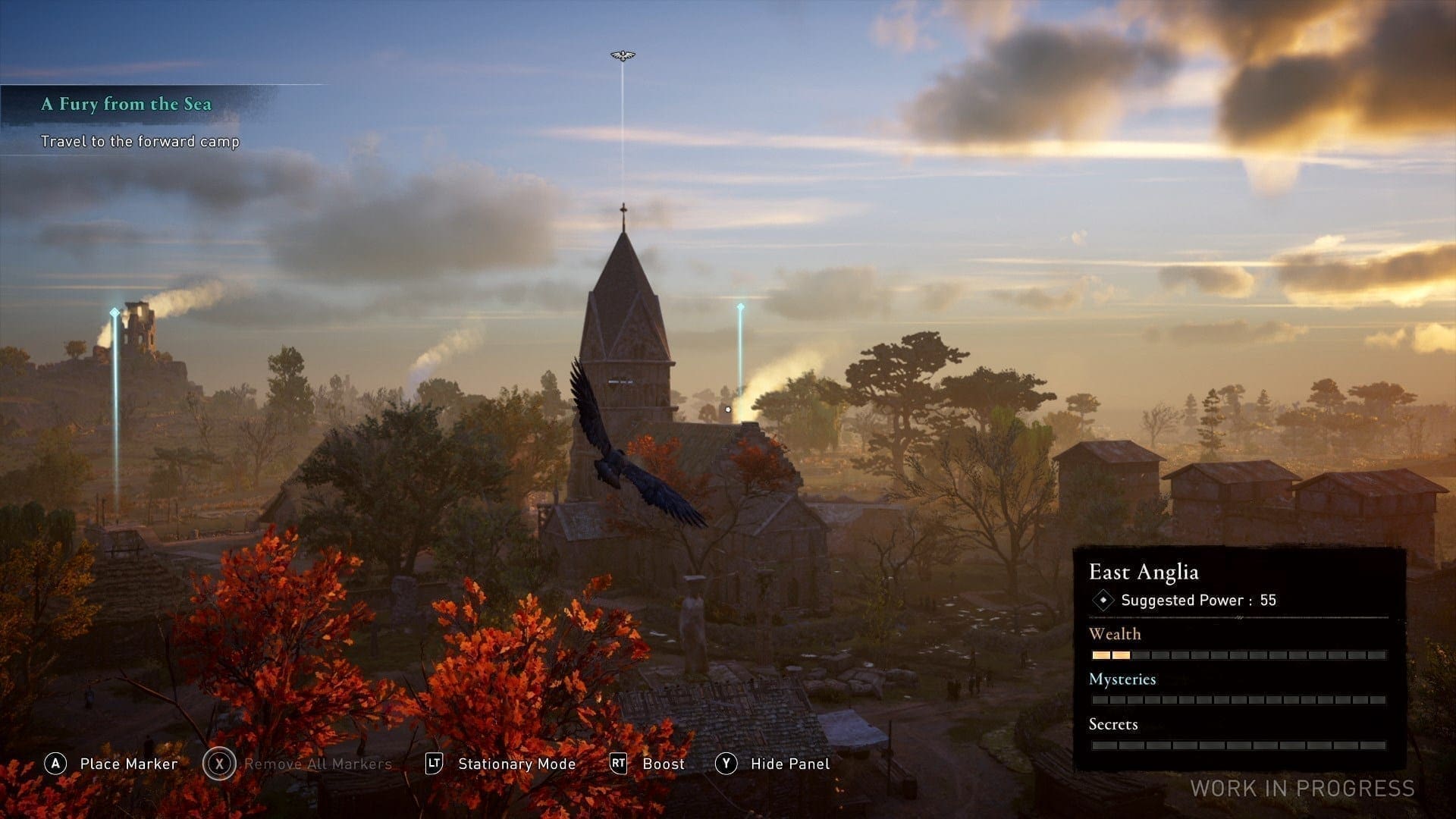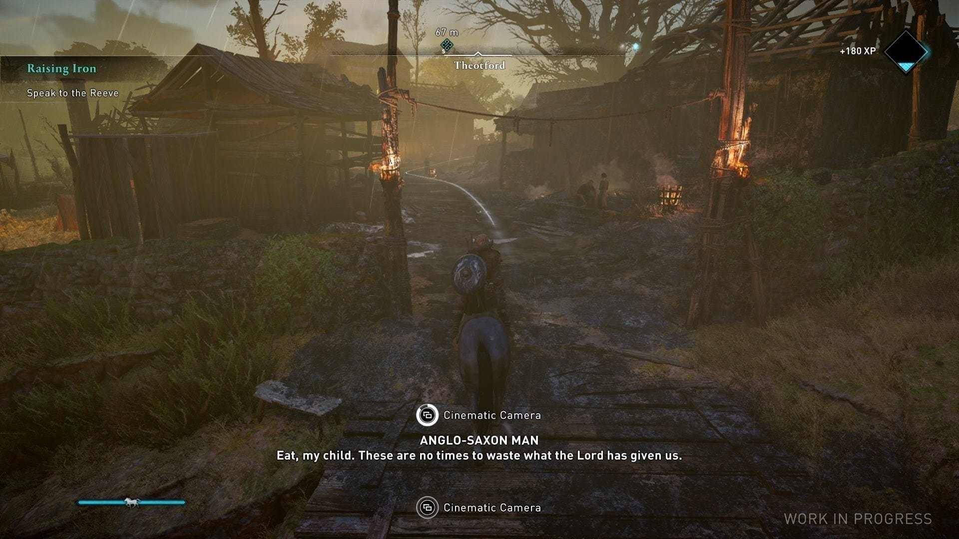 Beim Rest der Welt, die übrigens erneut verspricht riesig zu werden (East Anglia ist nur ein kleiner Teil der gesamten Welt, die später erkundbar sein wird und war in drei Stunden nicht ansatzweise vollständig zu erkunden), wartet ebenfalls viel, das man in bisherigen Teilen der Serie bereits kennen und eventuell auch schätzen gelernt hat. Nachdem man idealerweise via eurem Raben die Umgebungen ausgekundschaftet hat, können überall interessante Menschen getroffen, besondere Stätten gefunden oder Objekte erspäht werden, die unterschiedlichste Side-Quests auslösen. Ob hier allerdings in Sachen Tiefgang und Abwechslung eine Qualität wie etwa bei The Witcher 3 erreicht werden kann, bleibt noch fraglich und ist ebenfalls wohl erst durch unser finales Review zu klären.