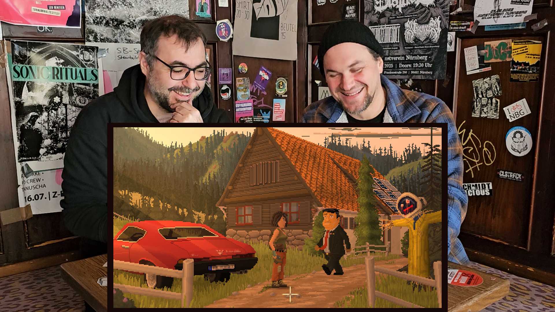 Wie viele Zocker unserer Generation sind auch wir mit Point-and-Click-Adventures groß geworden – und diese Spiele prägen einen sehr stark! Und wie schon erwähnt: Wir lieben es, Geschichten zu erzählen und Charaktere zu erschaffen. Dass wir das Ganze auch in Form eines Computerspiels umsetzen können, wurde uns tatsächlich erst so richtig während der Pandemie klar. Im Lockdown hatten wir die Zeit, uns ins technische Know-how reinzufuchsen: Wie bringt man eine Geschichte in ein Spiel? Da war dann der Sprung zum Point-and-Click-Adventure für uns ganz logisch – ein Genre, das quasi gemacht ist für Storytelling und kreatives Chaos!