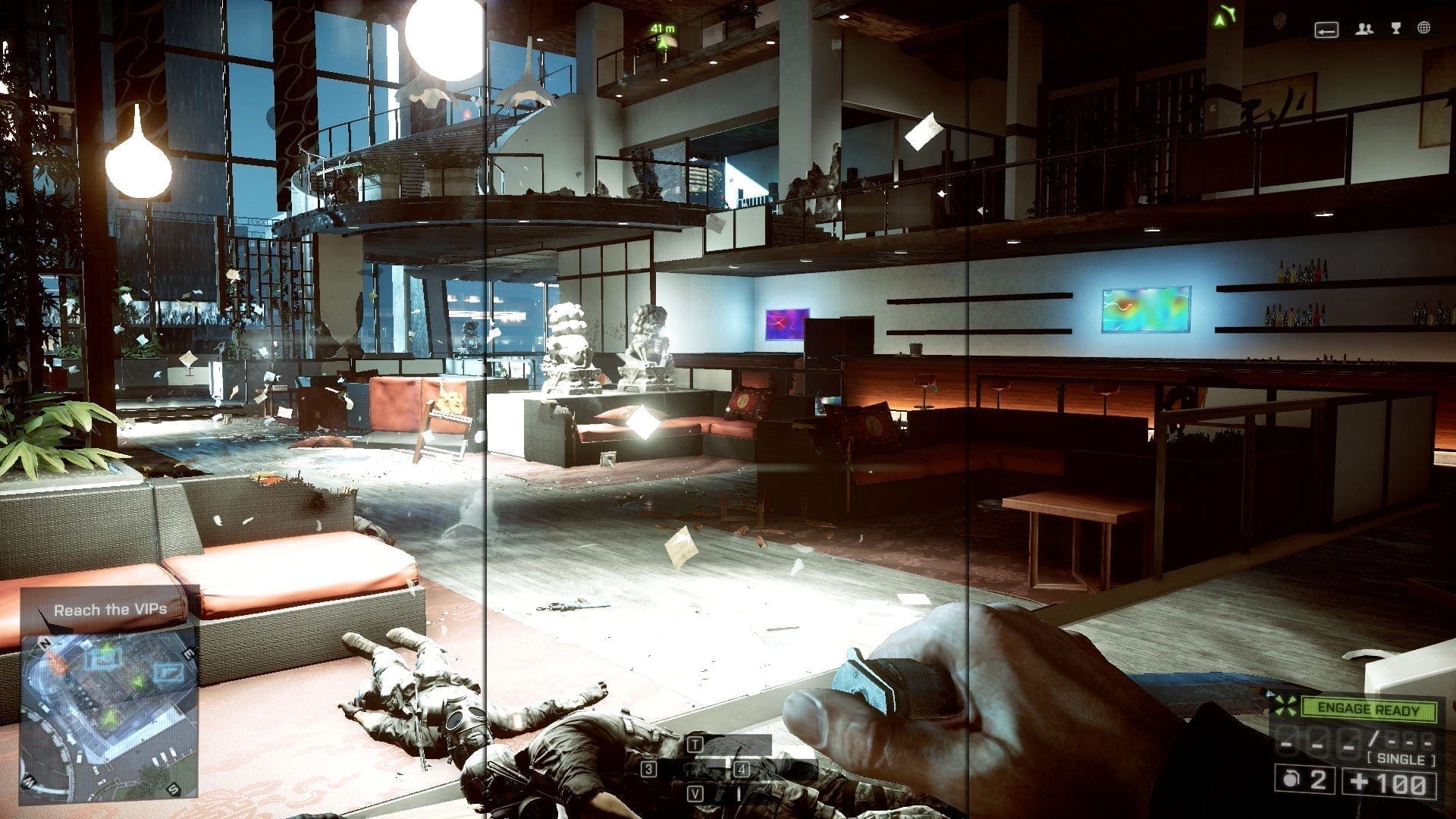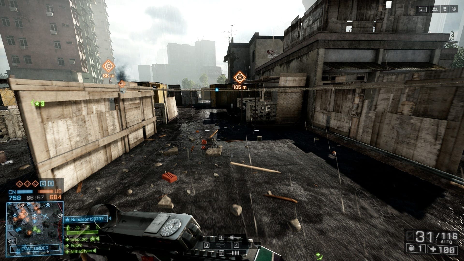 Das Leveldesign ist generell wirklich gut gelungen. Paracell Storm etwa präsentiert sich atmosphärisch dicht und schön gestaltet. Der heraufziehende und immer stärker werdende Sturm ist ein klasse Spielelement. Oder Siege of Shangai mit seinen taktischen Häuserschlachten zieht den Spieler schön ins Geschehen rein. Ab und An gibt es aber Ausreißer wie Operation Locker, ein Metro Verschnitt aus BF3 mit Engstellen die unter Dauerbeschuss mit M320 oder Granaten liegen. Mit dem neuen Effekt „Levolution“ bekommen die meisten Karten einen schönen Twist. Das Spielgeschehen ändert sich plötzlich und jedes Team steht vor neuen Herausforderungen. Es ist zwar nicht der ganz große Wurf wie von Dice angekündigt aber trotzdem eine gute Idee.
