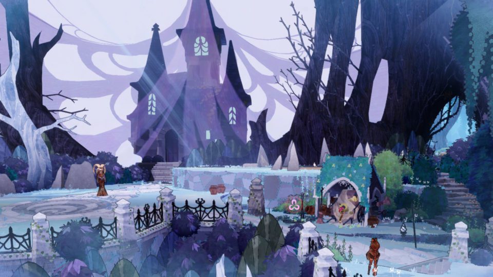 Wir laufen also gemeinsam durch die einzelnen Abschnitte und erledigen dabei Gegner und sammeln Zutaten für Tränke ein welche wir zum Heilen und Verstärken nutzen. Sollte Cheshire doch einmal zu stark verletzt sein stirbt er nicht, sondern fällt zurück in den Plüschmodus. Dann kann Cereza ihn aufheben, knuddeln und wieder zurück in den Kampf schicken. Neben den Kämpfen gibt es auch jede menge Rätsel und Geschicklichkeitspassagen. Rätsel müssen zusammen gelöst werden, auch wenn das bedeutet Cheshire, als Plüschtier durch die Gegend zu werfen, um ihn in bestimmte Bereiche zu bekommen. Überall im Wald finden sich sogenannte Tír na nÓg. Das sind Feenportale die uns in Dungeon-ähnliche Areale befördern, in denen wir Gegner verkloppen und Belohnungen bekommen. Mit den Elementarangriffen von Cheshire kommt dabei auch einigermaßen Freude auf.