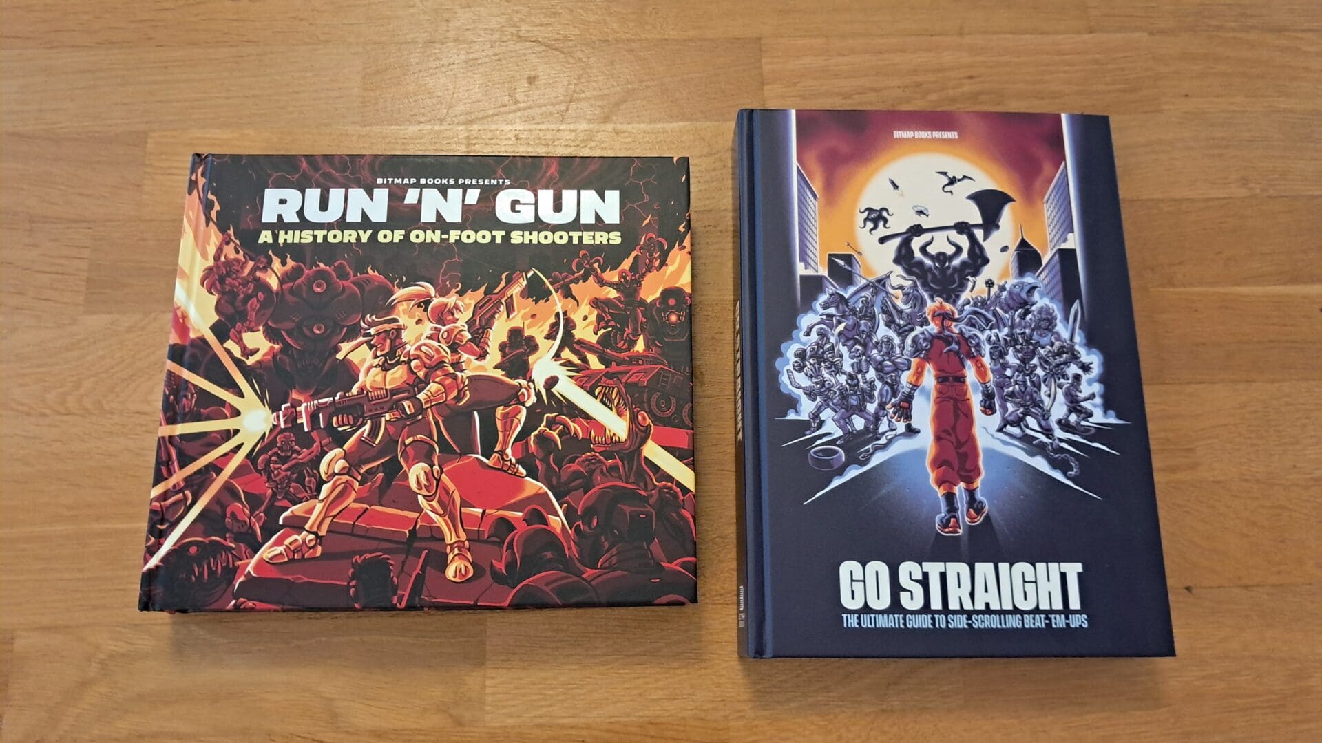 Bitmap Books hat sich zu einem der großen spezialisierten Publisher in diesem Bereich entwickelt. Während andere Bücher bei diversen Verlagen (oder im Selbstverlag, ohne Lektor oder qualitativem Inhalt…) erschienen sind, hat sich Bitmap Books vor allem auf (hochwertige) Literatur zu (Retro-) Computerspielen spezialisiert. Schon vor Jahren habe ich mir ein paar ihrer Werke geleistet (The CRPG Book, The Art of Point-and-Click Adventure Games, Commodore Amiga: a visual compendium), nun war es wieder so weit: Ein Buch über Prügelspiele (Go Straight: The Ultimate Guide to Side-Scrolling Beat-’Em-Ups) und eines über Run and Gun Spiele (Run ’n‘ Gun: A History of On-Foot Shooters) mussten her.