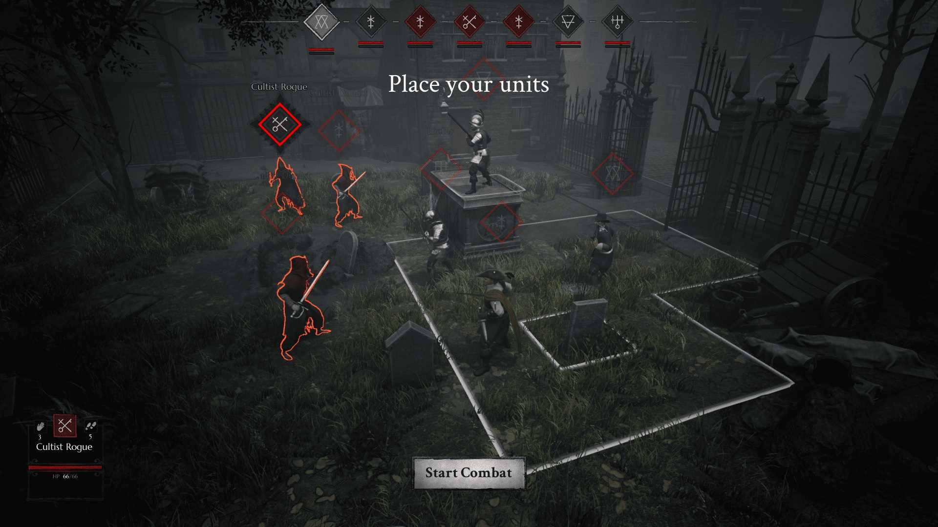 Das Kernstück des Spieles sind die rundenbasierten Gefechte. Zu Beginn positioniert man seine Helden in der Startumgebung. Klar, dass man Fernkämpfer eher weiter hinten hinstellen sollte. Die Einheiten können dann abwechselnd bewegt werden und Aktionen ausführen. Die Zugreihenfolge basiert auf der Beweglichkeit der einzelnen Einheiten. Am oberen Bildschirmrand wird die berechnete Zugreihenfolge angezeigt. Bewegung und Aktionen verbrauchen Bewegungs- bzw. Aktionspunkte.