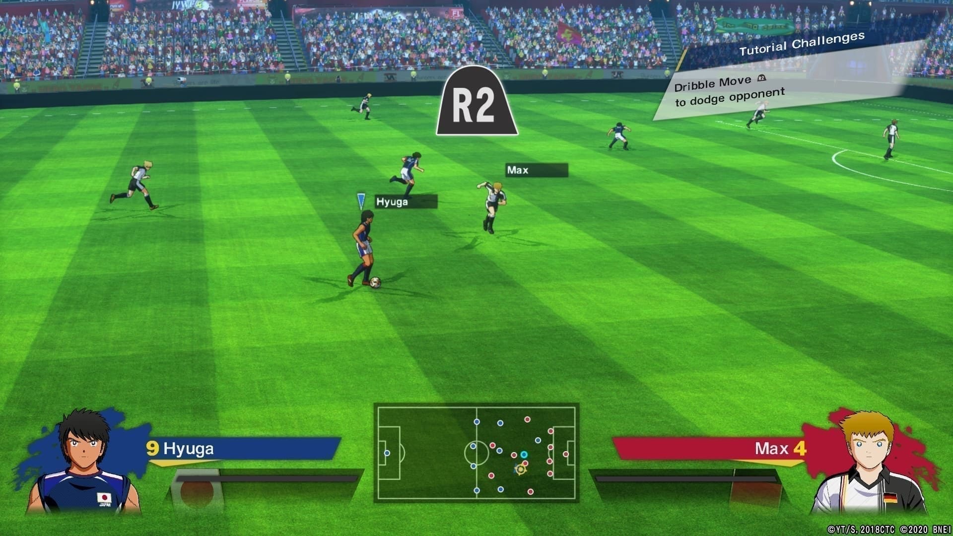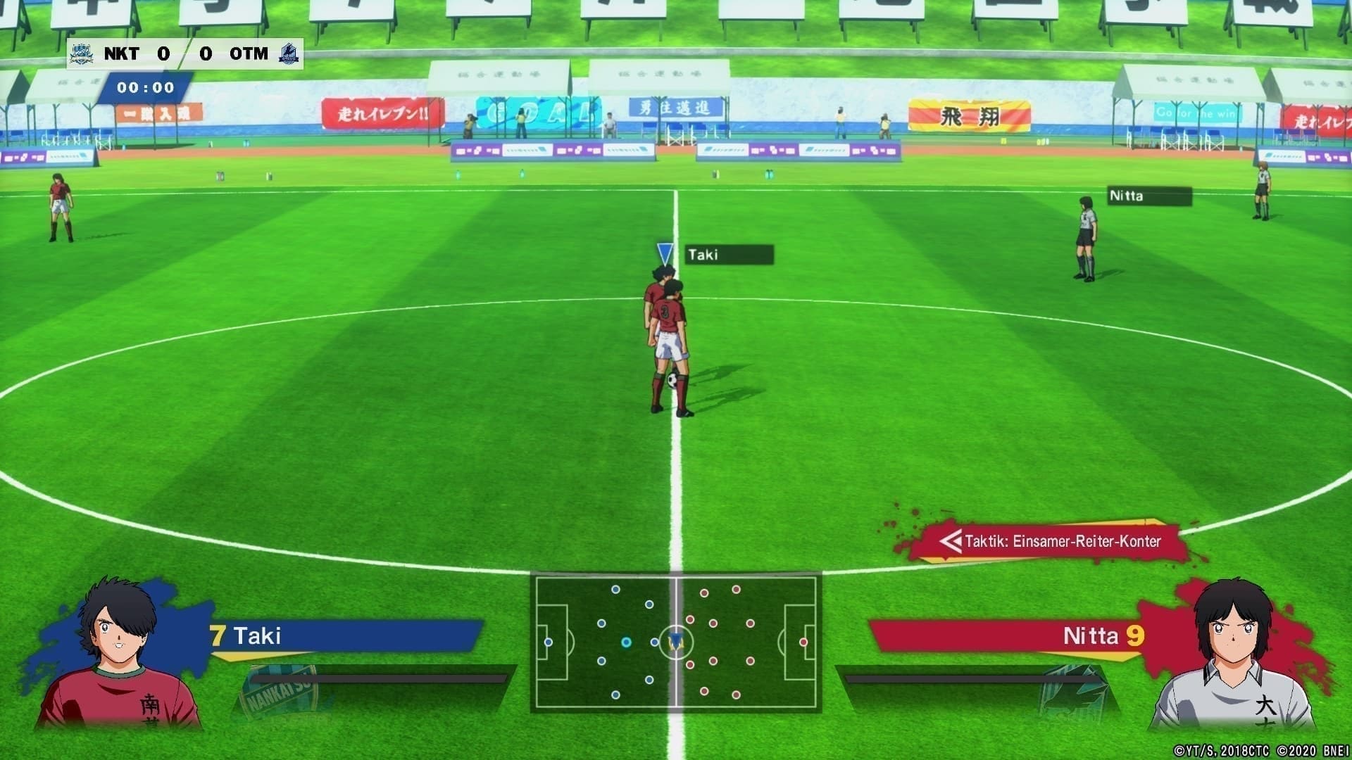 In die erste Kampagne, welche uns ca. fünf bis sechs Stunden beschäftigt, sind zugleich die Tutorials eingearbeitet, in welchen wir über die – zunächst nicht ganz unkompliziert anmutenden – Mechaniken des Spiels aufgeklärt werden; und derer gibt es Viele! Zunächst einmal sind auch in Captain Tsubasa: Rise of New Champions alle Mechaniken enthalten, die man sich von einem Fußballspiel mit Arcade-Prinzip erwarten darf: Hohe Pässe in die Tiefe, Flanken, Doppelpässe, Dribblings im Sprint und fiese Blutgrätschen (alias Tacklings).