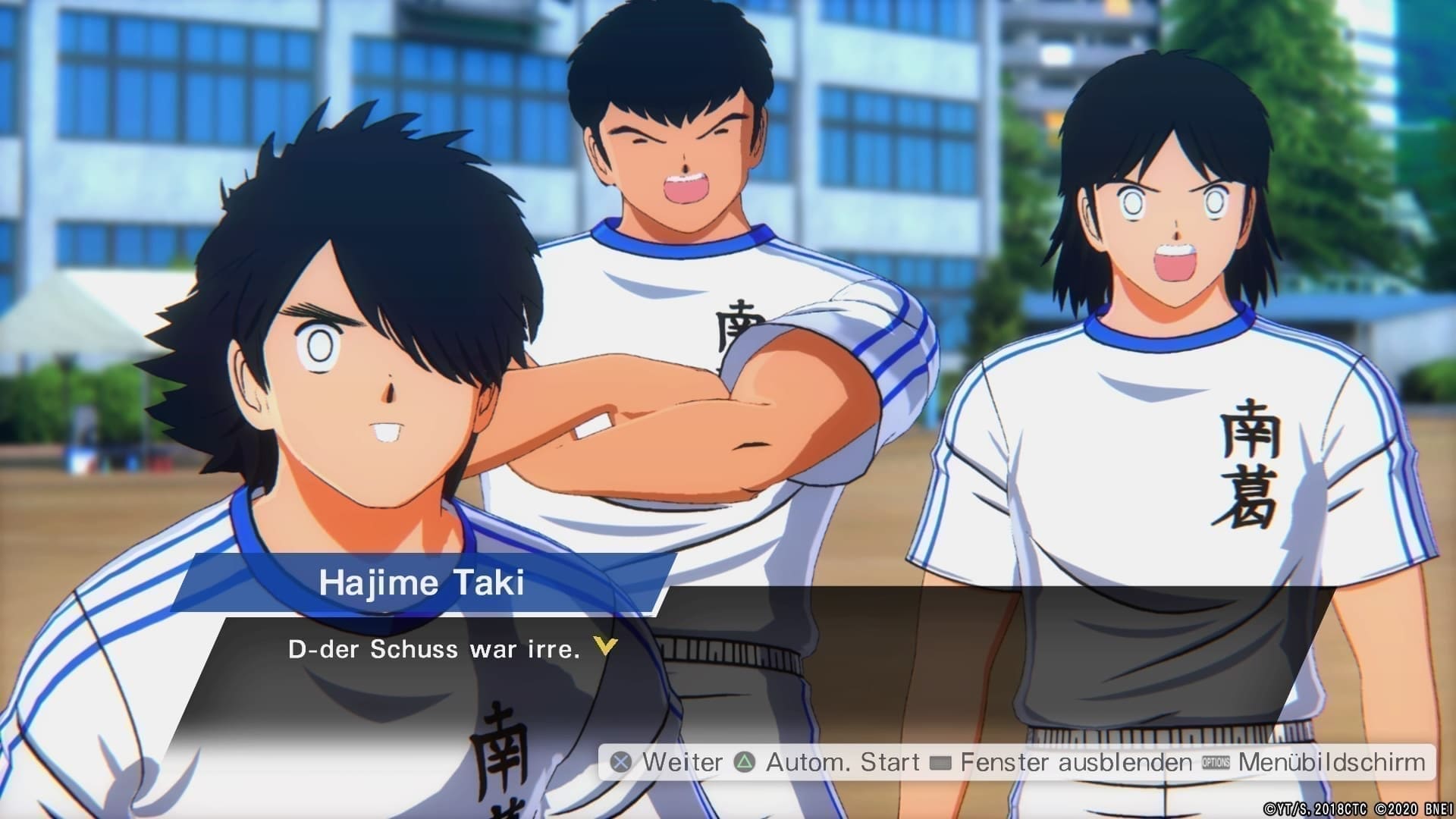 Die Geschichte wird dabei in der Regel jedoch leider nicht mittels richtiger Anime-Sequenzen erzählt, sondern in mehr oder minder statisch animierten Standbildern, in welchen sich die Spieler miteinander unterhalten. Mundbewegungen beim Sprechen, vor Entsetzen aufgerissene Augen mit schockstarren glasigen Pupillen sowie theatralisches Gestikulieren sind da schon das Höchste bewegter Gefühle. Ganz ähnlich, wenngleich ein wenig aufwändiger hinsichtlich des Schnittes, verhält es sich mit freischaltbaren Erinnerungssequenzen, die wir durch Siege oder das erfolgreiche Bestehen der unterschiedlichsten Herausforderungen erhalten. Spannender wird es da schon während der Matches selbst. Diese werden – selten aber doch – durch richtige Video-Sequenzen unterbrochen. So haben wir in einem Spiel der Tsubasa-Kampagne keine andere Wahl, als dass wir zwei Gegentore über uns ergehen lassen müssen. Dies ist Teil der Story und eben diese wird an besagten Stellen durch richtige Anime-Sequenzen erzählt. Das geht mitunter jedoch so weit, dass der Gegner aus dem eigenen Strafraum heraus ein Tor erzielt, da er sich aufgrund des Nankatsu-Pressings aus demselben nicht zu befreien vermag, die Story jedoch ein Gegentor verlangt. Soll sein, denn die Inszenierung ist während der Matches wirklich gelungen. Was von den Dialogen zwischen den Spielen nicht immer behauptet werden kann. Lokalisiert sind auch diese jedoch stets hervorragend, wenngleich ausschließlich in japanischer Sprachausgabe. Dafür gibt es auch deutsche Untertitel, was es jedoch nur bedingt leichter macht dem japanischen Kommentator während der Matches zu folgen.