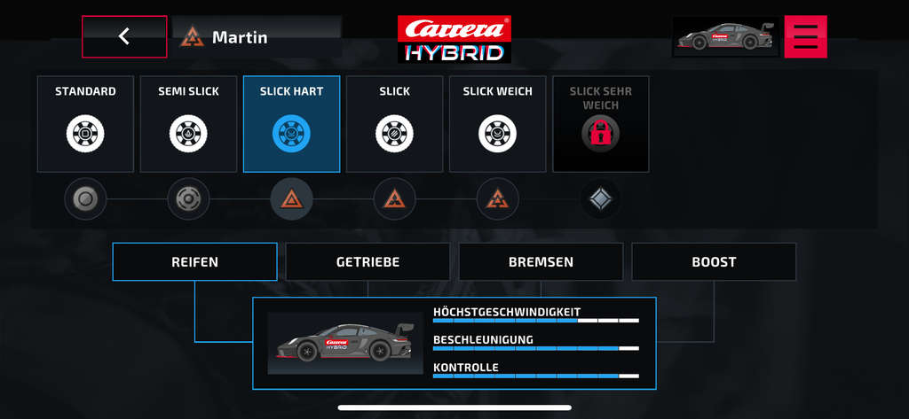 Die App bietet verschiedene Rennmodi, die über die klassischen analogen Rennen hinausgehen. So können neben dem „Freien Training“, auch „Einzelrennen“, „Herausforderungen“, oder sogar ein „Karriere-Modus“ gespielt werden. Das Highlight ist hier wohl der Karriere-Modus. Wie in einem klassischen Videospiel können sich die Spielenden von Level zu Level hocharbeiten, neue Herausforderungen meistern und exklusive Features freischalten. Mit jedem erfolgreichen Rennen und besseren Leistungen steigt der Fortschritt im Spiel.