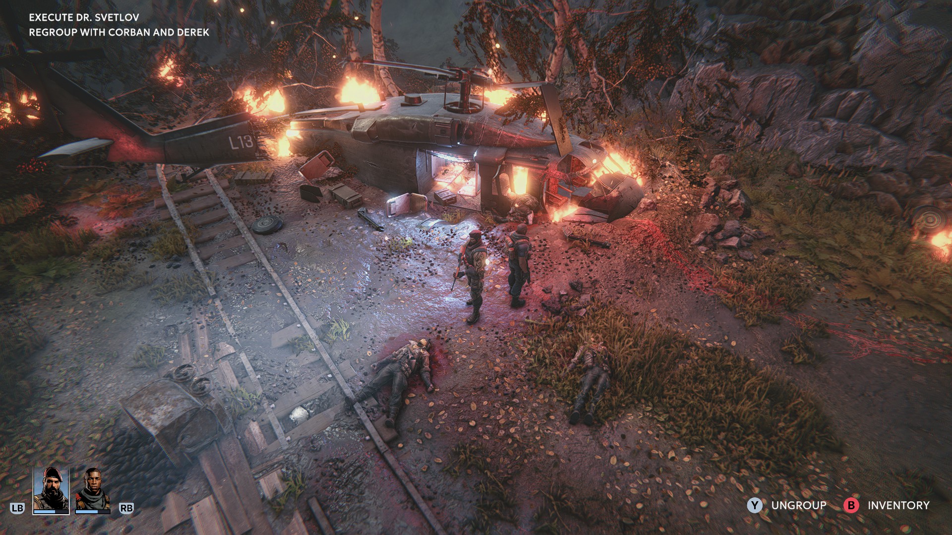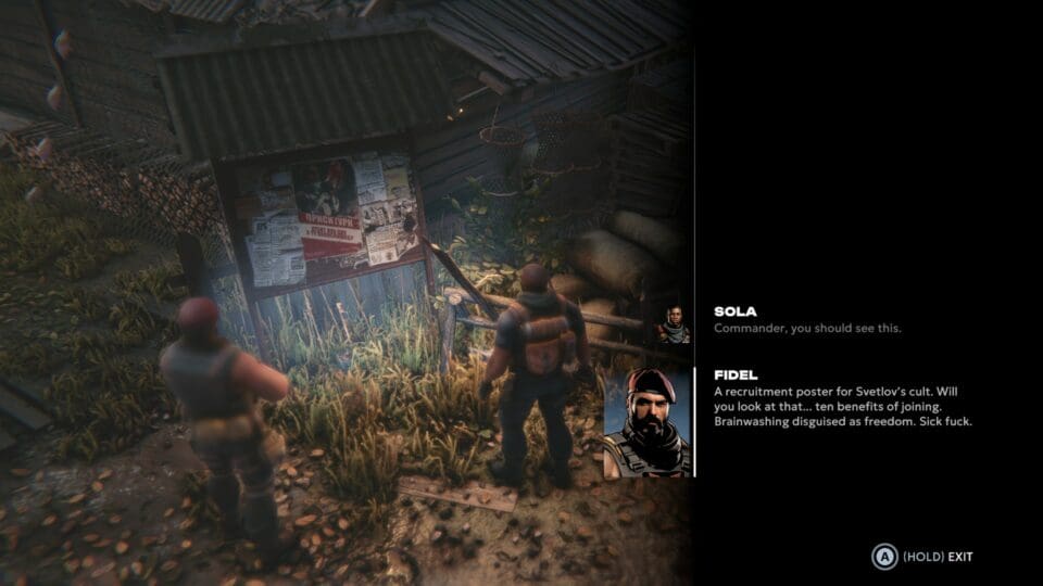 Die Geschichte ist gut gemacht. Sie ist weitgehend linear und mit gescripteten Ereignissen, auch wenn manche versteckte Räume optional sind. Wir spielen ein Team von vier Elitesoldaten des Regimes, die den in einer abgelegenen Gegend lebenden Rebellenanführer Dr. Svetlov erledigen sollen. Unser Hubschrauber wird aber bereits zu Beginn abgeschossen, unser Team landet mit dem Fallschirm an unterschiedlichen Orten. Der Pilot wird in eine Höhle gezerrt und getötet, einer unserer Soldaten wird ebenfalls nicht sonderlich alt.