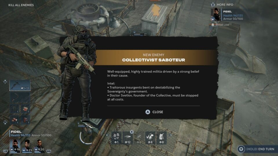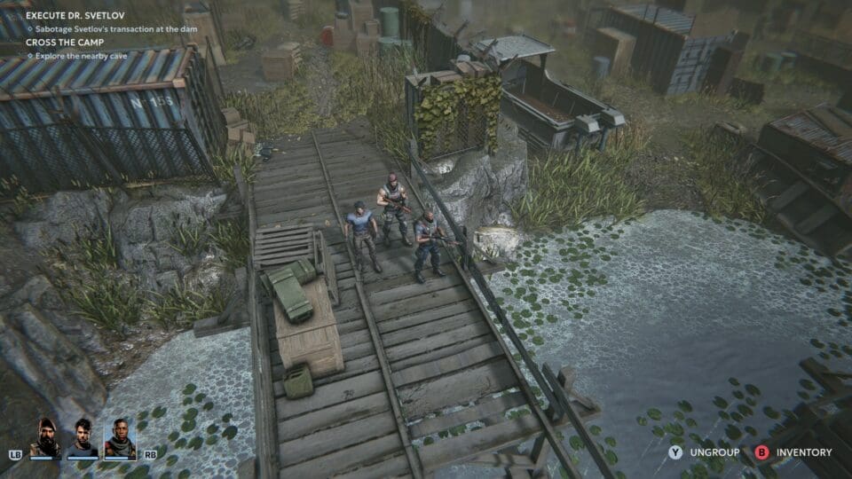 Der Kampf orientiert sich natürlich am Genreprimus XCOM. Jeder unserer Soldaten hat eine bestimmte Anzahl von Aktionspunkten, mit denen er bestimmte Handlungen setzen kann. Im Regelfall sich bewegen und schießen, aber je mehr Ausrüstung wir mit uns tragen und je besser unsere Soldaten werden, desto mehr ganz unterschiedliche Aktivitäten können sie ausführen. Nachladen, Granaten oder Molotov-Cocktails werfen, Bandagen anlegen oder verletzte Kameraden heilen bzw. wiederbeleben, Waffen wechseln, Gegenstände vom Boden aufsammeln, mit dem Enterhaken nach oben klettern, im Nahkampf zuschlagen, Pillen schlucken und noch einiges mehr erweitern unsere Handlungsoptionen beträchtlich. Nur Lebensmüde bleiben im Freien stehen, ihr solltet natürlich immer rasch hinter irgendetwas in Deckung gehen. Unsere Soldaten können auf Leitern klettern und erhalten einen Bonus für das Feuern aus erhöhten Positionen. Generell seht ihr immer vor jedem Schuss, wie hoch eure Trefferchance ist. Verglichen mit anderen Spielen treffen sehr viele der abgefeuerten Schüsse auch ihr Ziel – leider auch die Schüsse unserer Feinde.