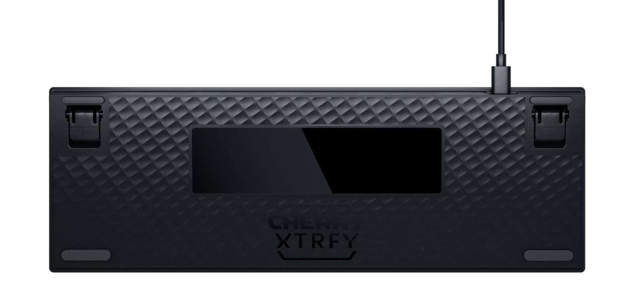 CHERRY möchte mit der neuen Gamingtastatur XTRFY K5V2 wohl vor allem Gamer ansprechen, die eine möglichst kompakte Tastatur suchen, entweder aus Platzgründen, oder weil Ziffernblock und F-Tastenblock sowieso überbewertet sind. Geliefert wird die Tastatur, welche in schwarz oder weiß erhältlich ist, übrigens im schicken dunklen Karton mit einem 2m USB-A auf USB-C Kabel, einem Werkzeug zum Entfernen von Tastenkappen, 2 Ersatzschaltern, einem Aufkleber und einer Kurzanleitung. Eine Handballenauflage gibt es standardmäßig nicht, der Preis bewegt sich hier je nach Farbe zwischen € 139 (schwarz) und € 149 (weiß). Wenn wir schon bei ergonomischen Gesichtspunkten sind, die Tastatur lässt sich mit 2 Füßchen auf der Unterseite in der Höhe verstellen und 2 weitere Gummifüße gewährleisten einen rutschfesten Stand auf dem Schreibtisch.