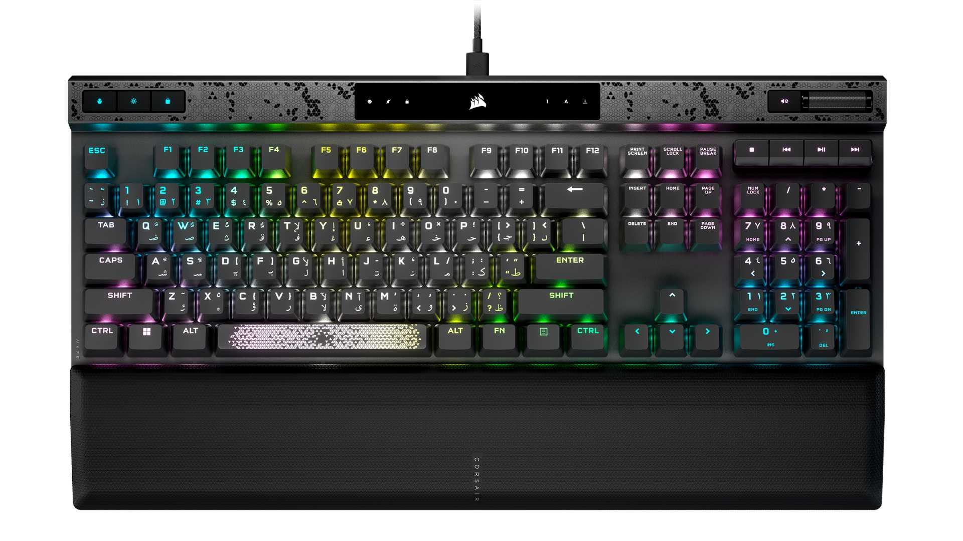 Die K70 MAX weist außerdem die markenübliche hochwertige Verarbeitung auf, die die Leistung und Zuverlässigkeit der CORSAIR K70-Produktreihe definiert. Durch die zwei Schalldämpfungsschichten der K70 MAX könnt ihr bei jedem Anschlag die verbesserte Akustik genießen. Der markante Aluminiumrahmen mit dem gelaserten Tri-Hex-Muster bringt Flair und Eleganz auf euren Desktop. Spielt mit euren Händen auf einer abnehmbaren magnetischen Handballenauflage mit Memory-Schaumstoff in exklusivem Komfort und trefft zielsicher jede der stabilen PBT-Double-Shot-Tastenkappen.