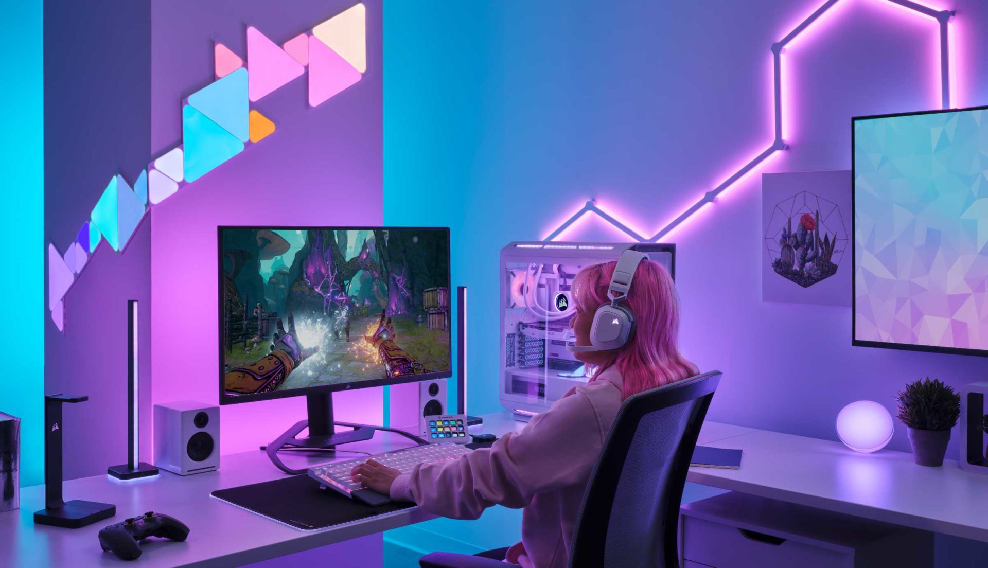 Mit Murals Lighting erhaltet ihr die Möglichkeit, die RGB-Beleuchtung über den Desktop hinaus zu erweitern, um den gesamten Raum mit strahlendem RGB-Licht zu füllen. Dank der Partnerschaften mit Ökosystemen für Smart-Beleuchtung wie Philips Hue und Nanoleaf könnt ihr die Wand-Panels, smarte Beleuchtung und mehr in Ihrem Gaming-Raum über iCUE steuern. Im Zusammenspiel mit Murals erstrahlen euer System, die Umgebungsbeleuchtung und die Wände in einer mehrdimensionalen Lichtlandschaft aus Farben und Effekten.
