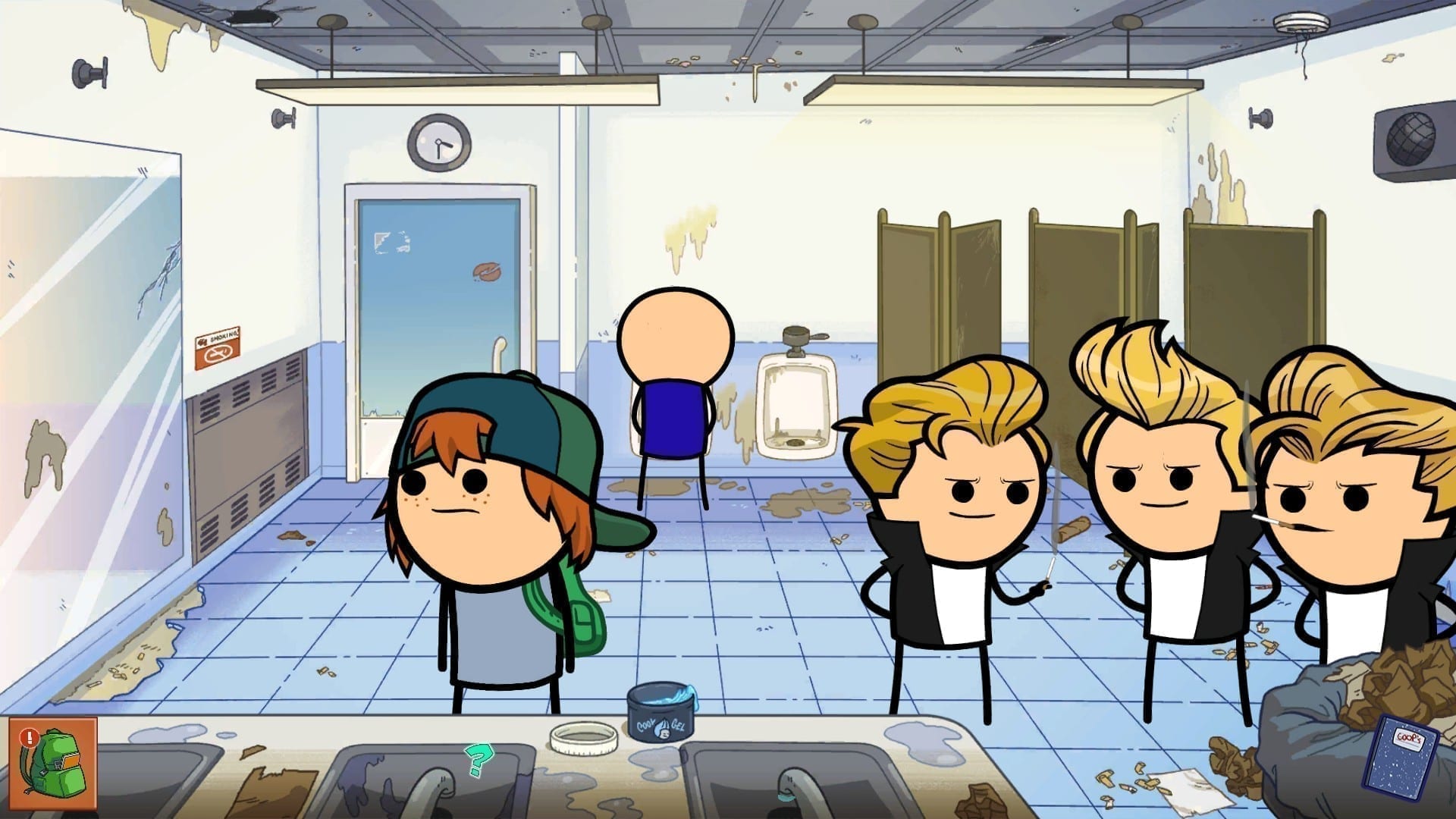 Die Handlung des Spieles beginnt in der Netherton High School, in der bereits eine Vielzahl von klassischen objektbasierten Rätseln zu lösen sind. Im Verlauf des Spieles trifft Cooper fast 100 weitere Personen, die fast alle irgendeinen Dachschaden haben. Ein Absuchen jedes Raumes auf benutzbare Objekte bleibt euch nicht erspart – eine Option zum Anzeigen aller Hotspots gibt es leider nicht. Die meisten Räume sind recht aufwendig gestaltet und voller Objekte (und Personen), es dauert also seine Zeit um die gesamte Umgebung zu untersuchen. Mir als alten Fan von Adventures hat das unheimlich viel Spaß gemacht, auch weil die Beschreibungen fast immer im typischen Cyanide & Happiness Humor geschrieben sind. Für Spieler, die schnelle Action suchen, hat Cyanide & Happiness – Freakpocalypse jedoch nichts zu bieten.