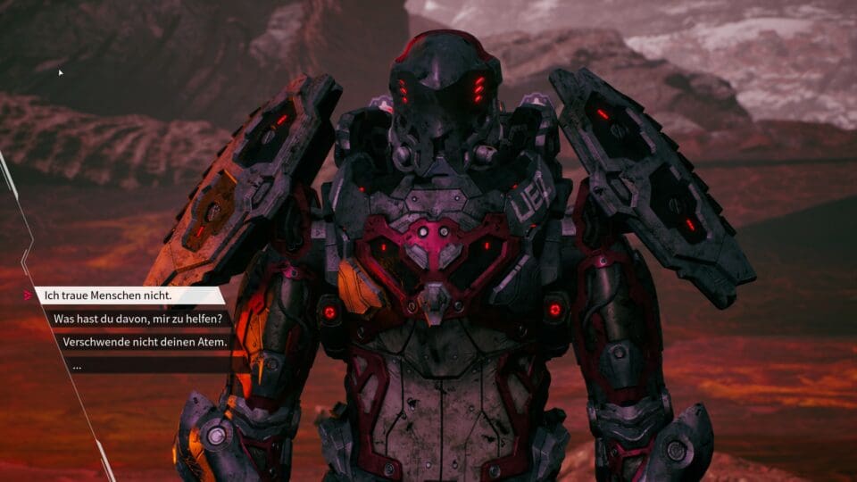 Wir spielen also einen Söldner, der für die Freiheit der Menschheit gegen das Axiom kämpft. Von der fliegenden Festung der Outers sind wir entkommen, unser Freund Nerve hat es leider scheinbar nicht geschafft. Wir befinden uns am roten Planeten, wo wir in einer Stadt der Menschen untergekommen sind. Wir verbessern unsere Ausrüstung und verwandeln uns immer mehr in eine High-Tech Kampfmaschine, die in einer Open World Umgebung die Ausrüstung ihrer erledigten Gegner einsammelt und immer neue Fähigkeiten dazulernt. Die Welt ist in einem recht unangenehmen Zustand. Einzelne Gegner greifen außerhalb der Stadt immer wieder an, und mutierte Wesen (Immortals genannt) durchstreifen die Wüste auf der Suche nach Beute.