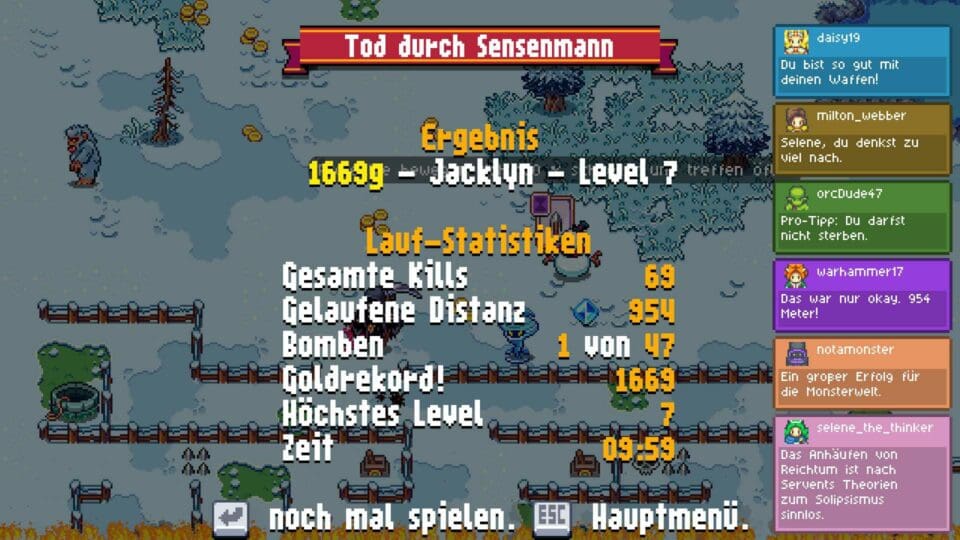Mit dieser Grundsatzentscheidung holte Gilbert seine Konzeptionen für Runner wieder aus der Schublade und kombinierte diese mit dem bereits erarbeiteten Artdesign seines nicht realisierbaren RPG-Projekts – und Death by Scrolling erblickte das Licht der (Unter-)Welt.