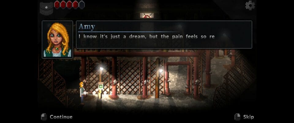 Zu den Symptomen der Narkolepsie gehören übermäßige Tagesmüdigkeit, schlafbezogene Halluzinationen und gestörter Nachtschlaf. Und genau daran scheint Amy, unsere Spielfigur, zu leiden. Ihr wisst manchmal nicht so genau, ob ihr euch in der Realität oder in einem Traum befindet. Zu Beginn kommt Amy zusammen mit ihrem Bruder Thomas auf einem völlig verlassenen Zugbahnhof an. Wo sind denn alle Leute? Plötzlich ist auch Thomas verschwunden… die Bahnhofsuhr ist ebenso seltsam wie die Zuganzeigetafel. Hier stimmt was nicht. Mit einer Taschenlampe erkunden wir einen dunklen Raum – wobei wir hier nur den durch den Lichtkegel beleuchteten Bereich sehen – sehr atmosphärisch. Und genau das trifft auch auf das ganze Spiel zu – die Atmosphäre ist wirklich fantastisch! Schon bald finden wir unseren Bruder – oder zumindest sein Grab. Und dann wachen wir auf – was für ein Albtraum!