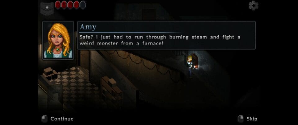 Schon früh im Spiel müssen wir das erste Rätsel lösen und die Stromzufuhr der Zuganzeigetafel in einem kleinen Minispiel regulieren. Ein paar Klicks, und das ist erledigt. Solche kleinen Minispiel-Rätsel tauchen im Spiel öfters auf. Schafft ihr eines nicht, kommt ihr nicht weiter. Und dann kommt auch bald eine weitere etwas unerwartete Neuerung hinzu – Kämpfe! In einfachen rundenbasierten Gefechten mit Monstern müsst ihr eure Gegner töten – oder weglaufen. Erwartet euch keine JRPG-Komplexität, aber ihr könnt bestimmte Charakterwerte verbessern (Laufgeschwindigkeit, Fassungsvermögen eures Inventars, Möglichkeit der Beeinflussung eurer Tagträume,…) und unterschiedliche (verbrauchbare) Waffen oder Heilmittel nutzen.