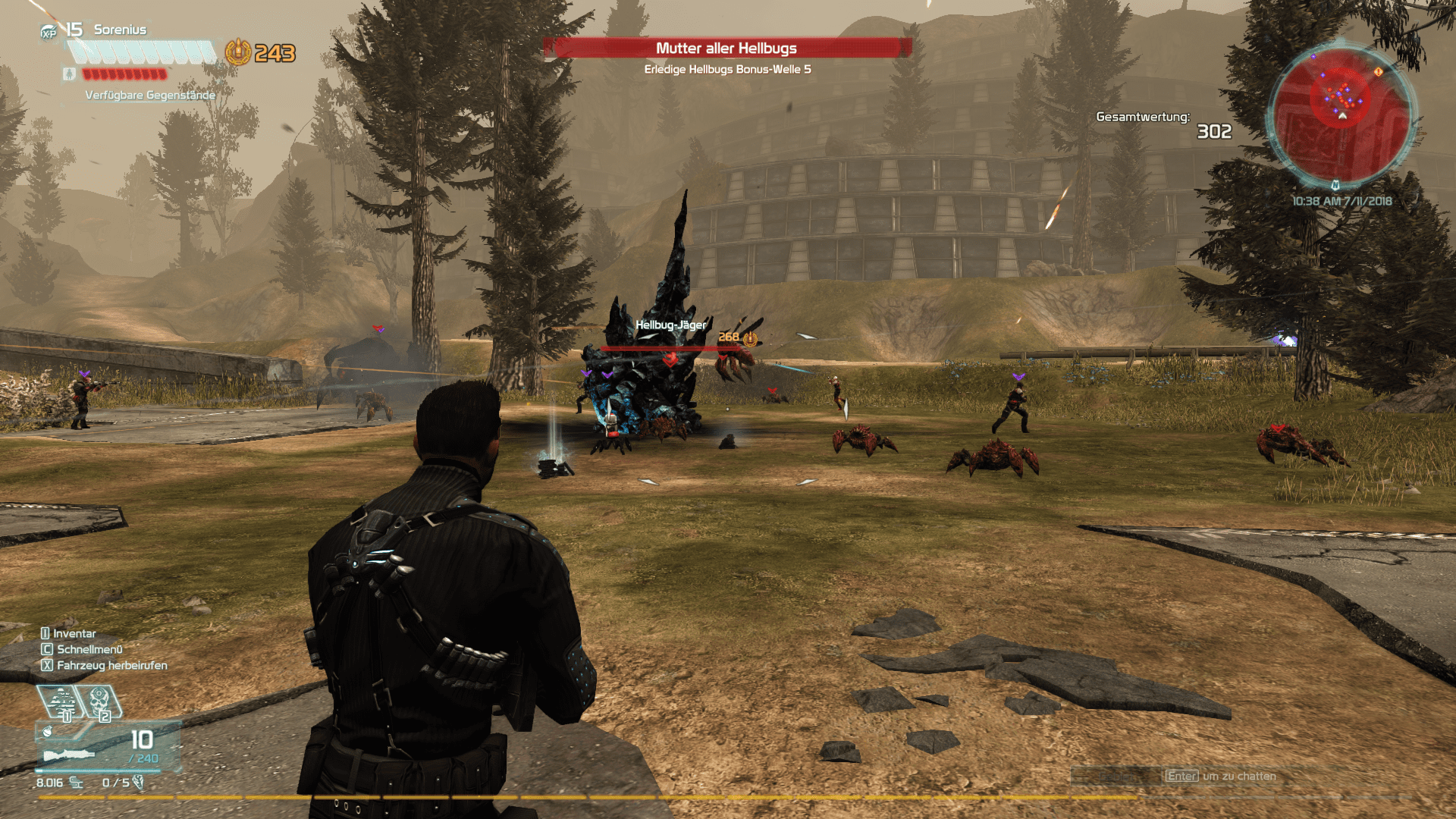 Die Quests sind mehr oder minder generisch und eher in der Kategorie „Einheitsbrei“ angesiedelt. Wenn diese jedoch in Gruppen erledigt werden, wird mit dem Abschluss der Aufgabe eine kurze Übersicht präsentiert, die etwa die Zahl der Abschüsse umfasst. So kann sich schnell ein kleiner, gruppeninterner Wettkampf bei der nächsten Quest auftun, der motiviert. Zusätzlich stolpern wir zwischen den Arbeitsaufträgen immer wieder über Ereignisse in der offenen Welt, doch auch diese wiederholen sich schnell. Beispielsweise wenn wir zum hundertsten Mal zwei Soldaten vor ein paar Banditen retten, oder mal wieder ein Hellbug-Nest zerstören sollen.