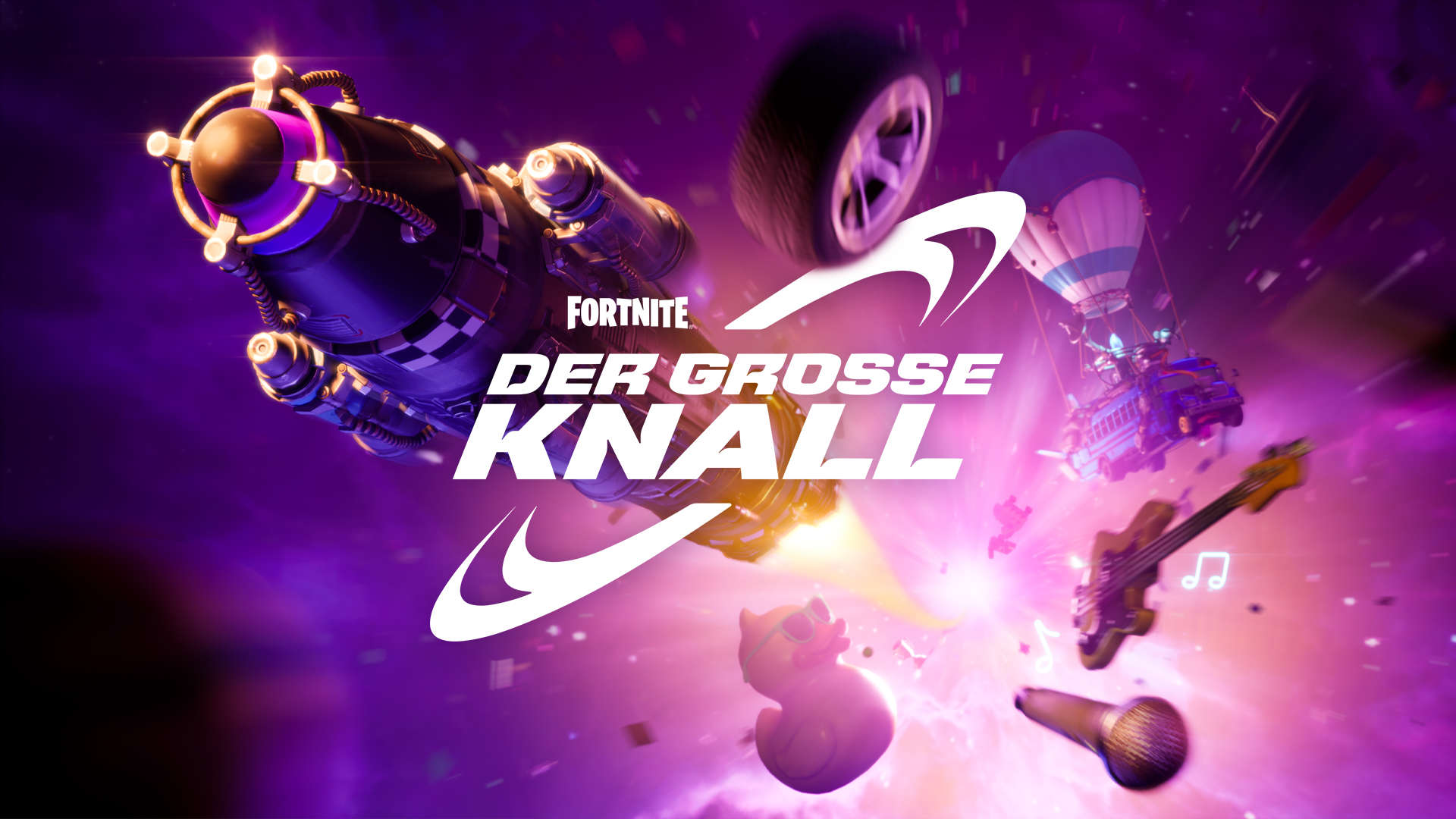 - „Der Große Knall“ ist ein Fortnite-Event, das am Samstag, den 2. Dezember 2023, um 20 Uhr (MEZ) beginnt. Das Erlebnis wird 30 Minuten vorher im Battle Royale-Modus im Entdecken-Bildschirm verfügbar sein, so dass ihr schon vor dem Start des Events ins Spiel kommen und euch mit kosmetischen Gegenständen ausrüsten könnt.