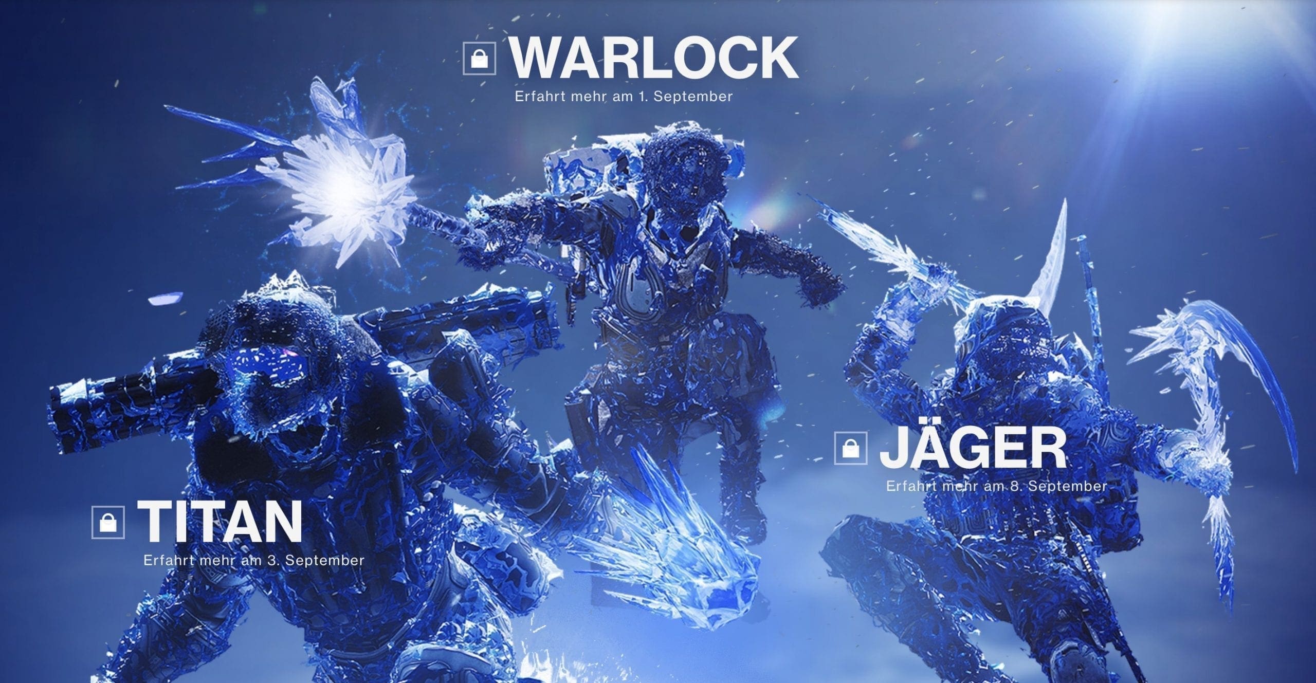 Alle neuen Klassen werden nochmal in eigenen Streams seitens Bungie vorgestellt. Diese Streams finden am 01, 03. und 09. September statt, und decken dabei respektive den Warlock, Titan, und Jäger ab!