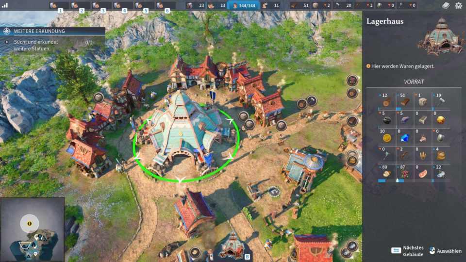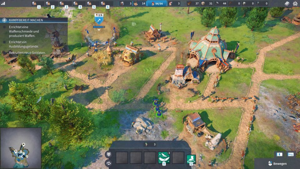 Die Atmosphäre passt eigentlich, grafisch ist alles toll und detailliert in Szene gesetzt und es macht sofort Spaß die Einwohner herumwuseln zu sehen. Die Umgebung ist stimmig, Hirsche spazieren durch den Welt und im Wasser sind die Fische zu beobachten. Die drei im Spiel vorkommenden Völker unterscheiden sich auch grafisch schön voneinander und so geht die Arbeit schnell voran. Aber leider auch irgendwie „zu einfach“, das Spiel nimmt uns viel ab und zusätzlich können stellenweise Aufgaben auch noch „automatisiert“ werden, wie z.B. die Rekrutierung und das Training von Soldaten, die das Spiel dann von selbst trainiert, solange eben genug Waffen zur Verfügung stehen.