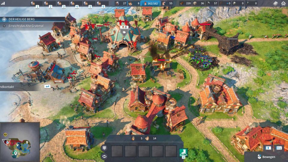 Wer nicht alleine spielen will, kann auch Skirmish-Gefechte und einen Mehrspielermodus ausprobieren, die wir allerdings nur ganz kurz ausprobiert haben und es ermöglichen 1vs1, 2vs2 und 4vs4 Partien gegen andere Spieler:innen zu zocken. Aufgrund der fehlenden taktischen Möglichkeiten läuft das aber im Prinzip auch darauf hinaus wer halt schneller mehr Truppen produzieren kann, der gewinnt.
