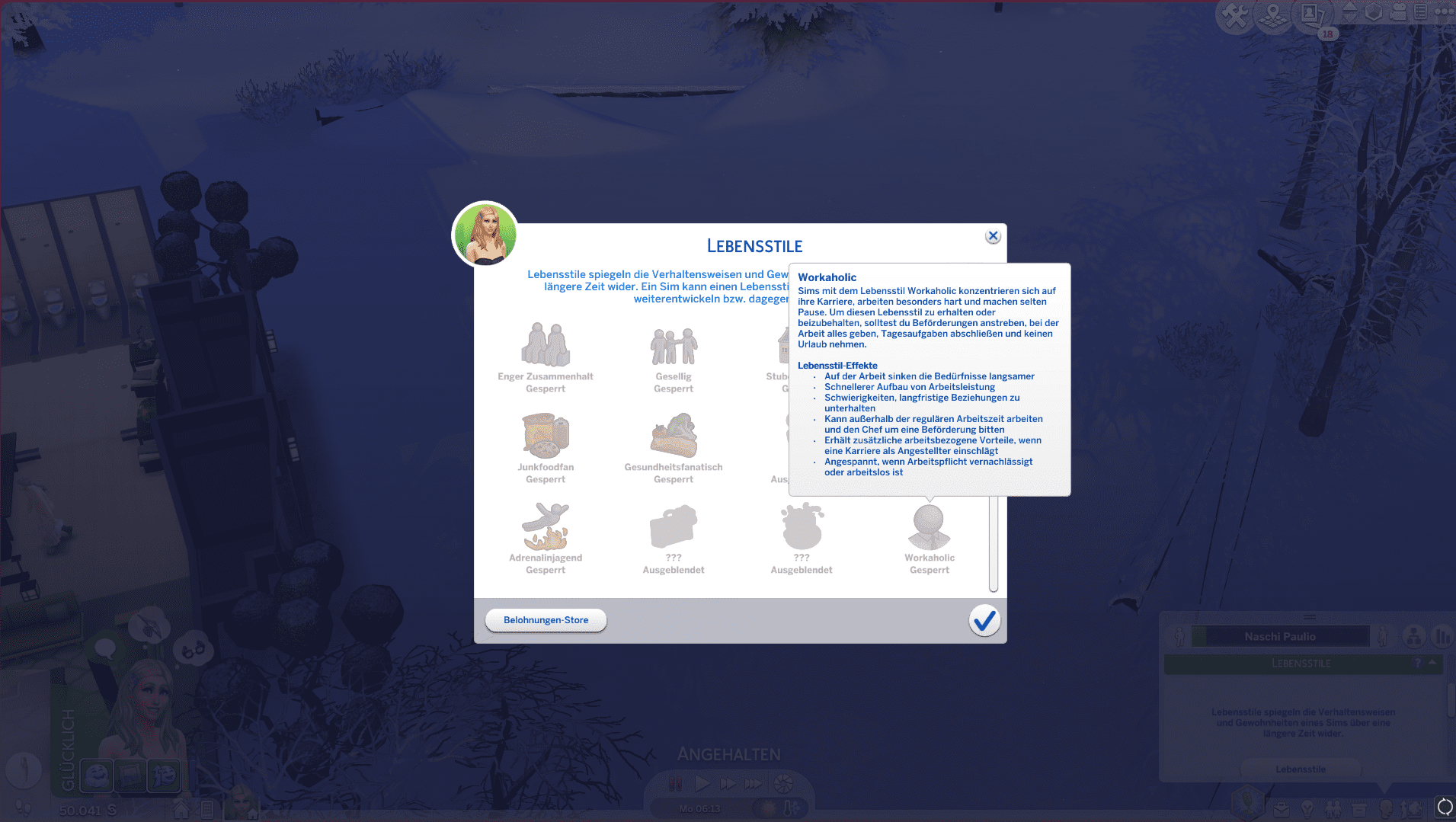 Die Einführung der Lebensstile fand ich in den Grundzügen gut gelungen, bisher waren mir die Auswirkungen jedoch noch zu gering, und brauchten wirklich viel Zeit bis sie einmal griffen. Hier hätte ich mir etwas schnellere, und vor allem gravierendere Eingriffe in das simlische Leben gewünscht. Auch das Kletter-Feature fiel eher mau aus und vor allem das Anstehen in der Wintersport-Anlage raubt dann doch immer wieder einige Nerven.