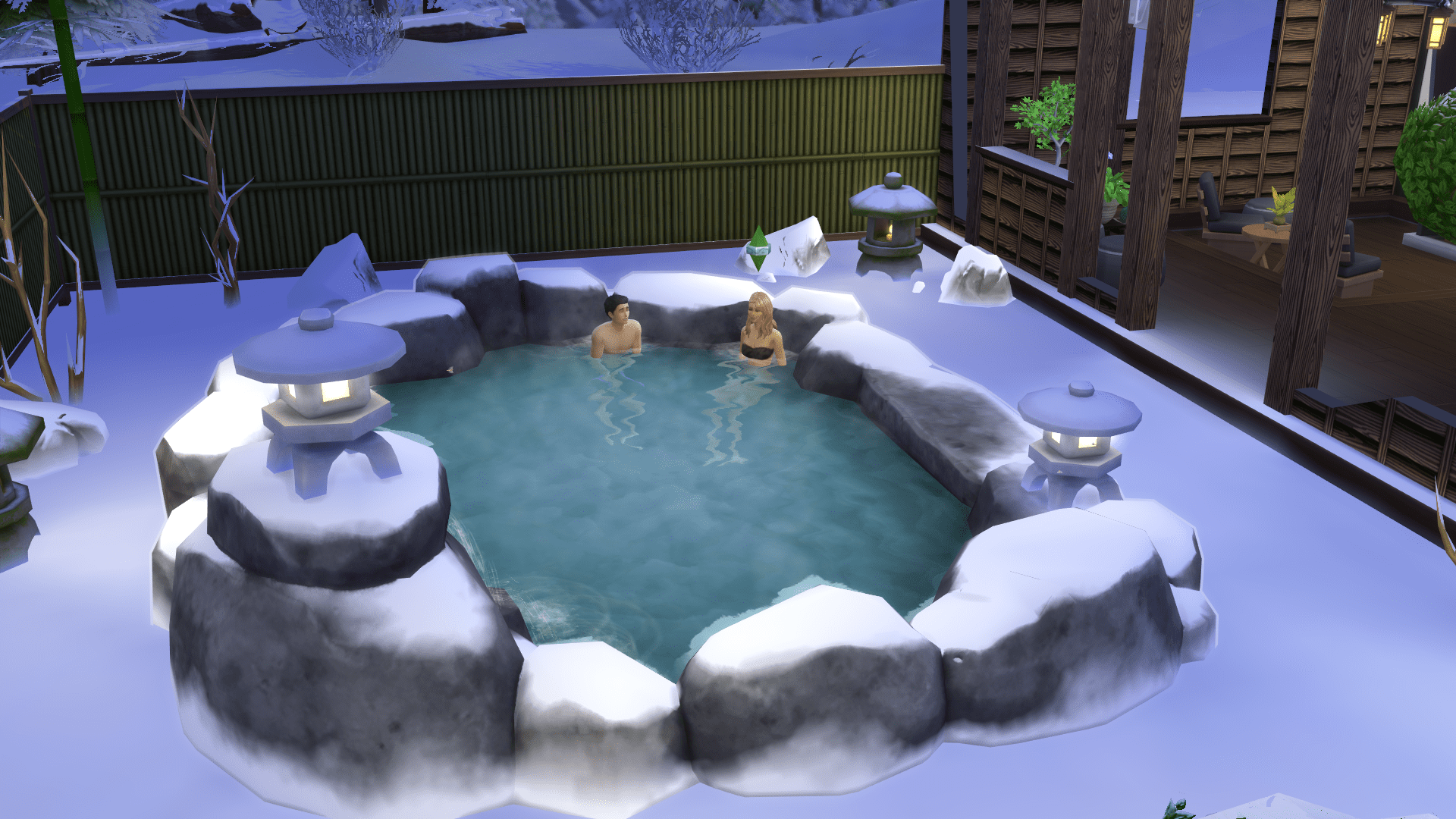 Dabei bietet Die Sims 4: Ab ins Schneeparadies insgesamt 173 Bauobjekte und 134 neue Create-A-Sim Anpassungen zur Verfügung. Dabei warten auf euch viele speziell japanische Elemente, wie beispielsweise Shoji-Türen, Tatami-Matten oder Papierlaternen. Auch Elemente wie das Kochbuch wurden um Gemüsetaschen oder Eier-Ramen ergänzt. Nach einer rasanten Abfahrt können Sims im Zen-Garten oder der winterlichen und heißen Oase entspannen. Auch wenn das namensgebende Schneeparadies sich oft in den Vordergrund drängt, so waren diese abwechslungsreichen Optionen für mich das wahre Herzstück der Erweiterung, und konnten wirklich auf voller Länge überzeugen.