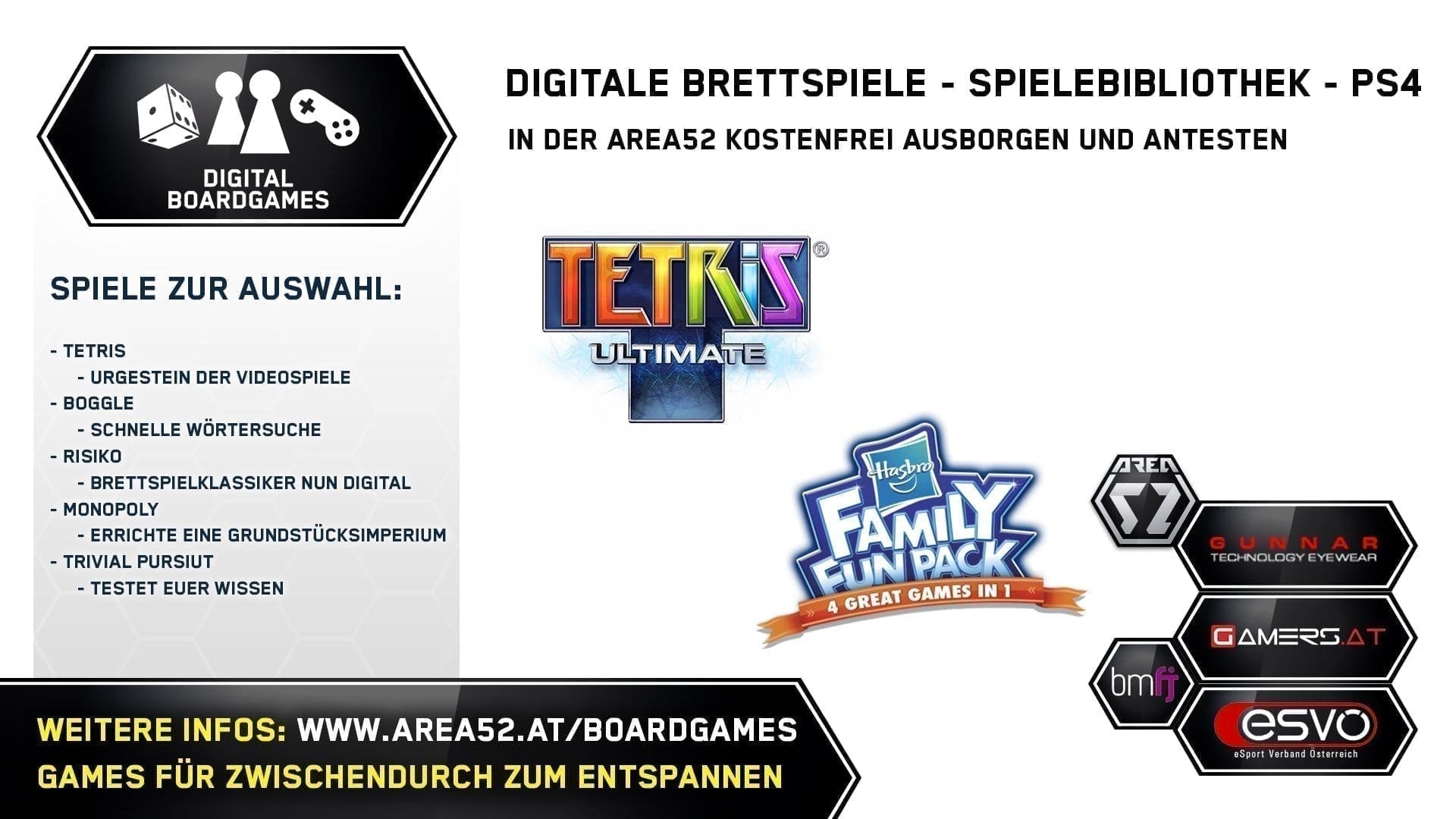 | Eintritt: | Digitale Brettspieler – Kostenlos AREA52 Tageskarte – 6 Euro |
