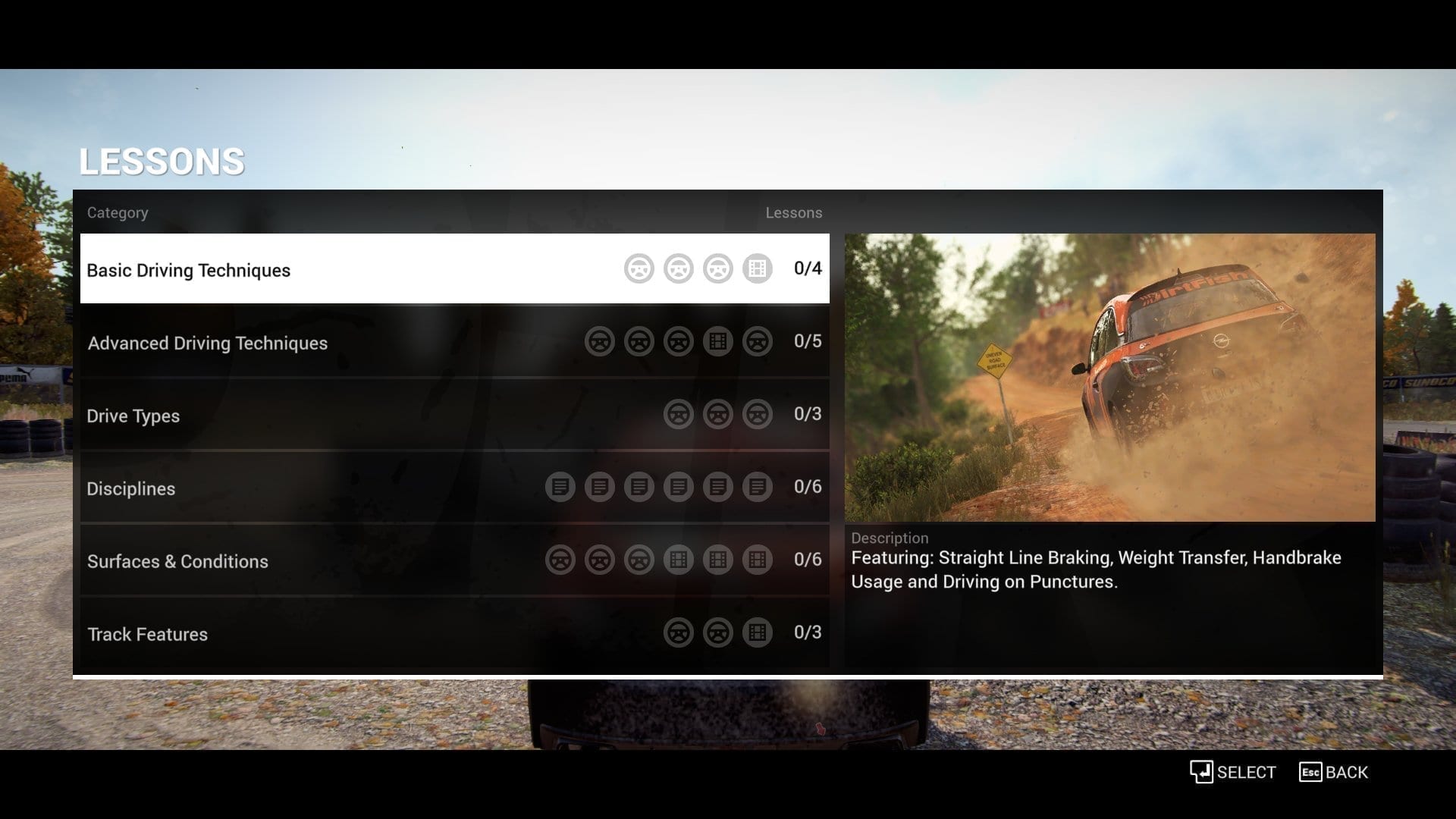 Jedenfalls sind an dieser Stelle noch beide Lager – also DiRT-Rally-Fans und DiRT 3-Fans vermutlich happy. Vor allem aber auch all jene, die vielleicht noch nie virtuell hinterm Steuer gesessen haben. Diese erwartet als nächstes nämlich eine Fahrschule, die ihren Namen tatsächlich verdient hat: In vielen Einzel-Lektionen könnt ihr in aller Ruhe erkunden, wie genau Lastwechsel, unterschiedliche Beläge und diverse Manöver eigentlich so auf das Auto wirken und ohne den Druck in einem Rennen zu stecken, den Umgang mit den Rallyboliden lernen.