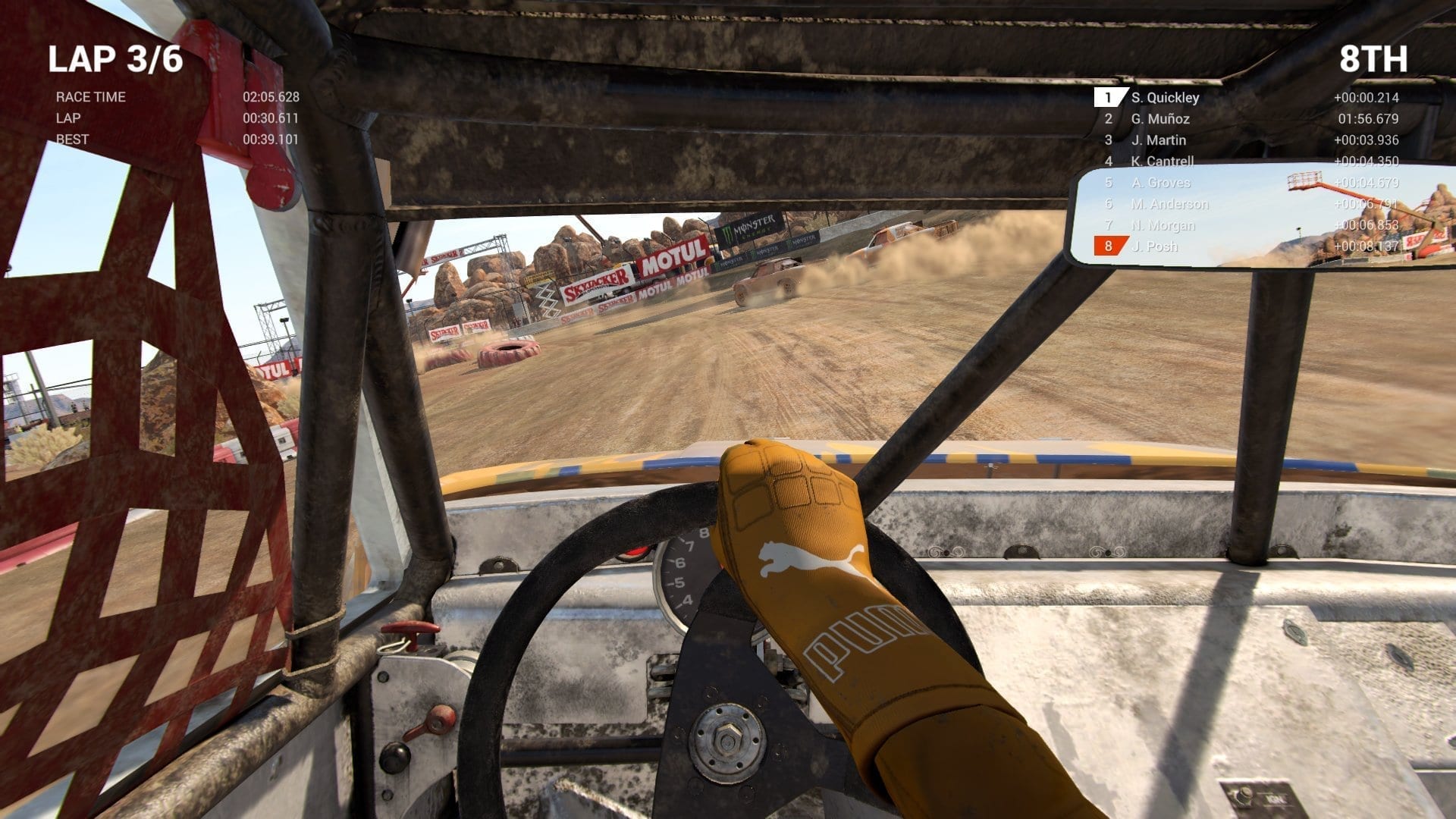 Absolut nichts zu meckern haben wir hingegen beim Fahrverhalten der Autos. Egal ob nun im Simulations- oder im Gamer-Modus: Die Physik des Spiels ist stets gut nachvollziehbar und schlüssig. Auch das Schadensmodell weiß zu überzeugen: Von kosmetischen Lackschäden bis hin zum Verlust kompletter Teile des Autos ist alles möglich. DiRT 3-Fans wird hierbei aber vermutlich negativ auffallen, dass es das Rückspul-Feature nicht mehr gibt. Je nach Schwierigkeitsgrad-Einstellung habt ihr lediglich die Möglichkeit das Rennen ganz neu zu starten. Wer also in der letzten Kurve noch von der Strecke fliegt hat schlichtweg Pech gehabt … wie im echten Leben eben auch.