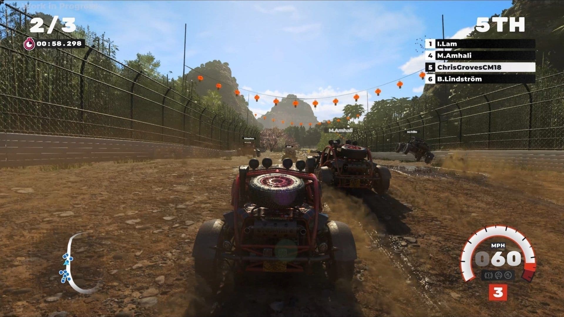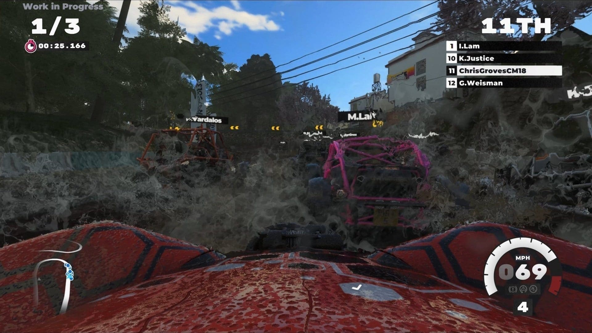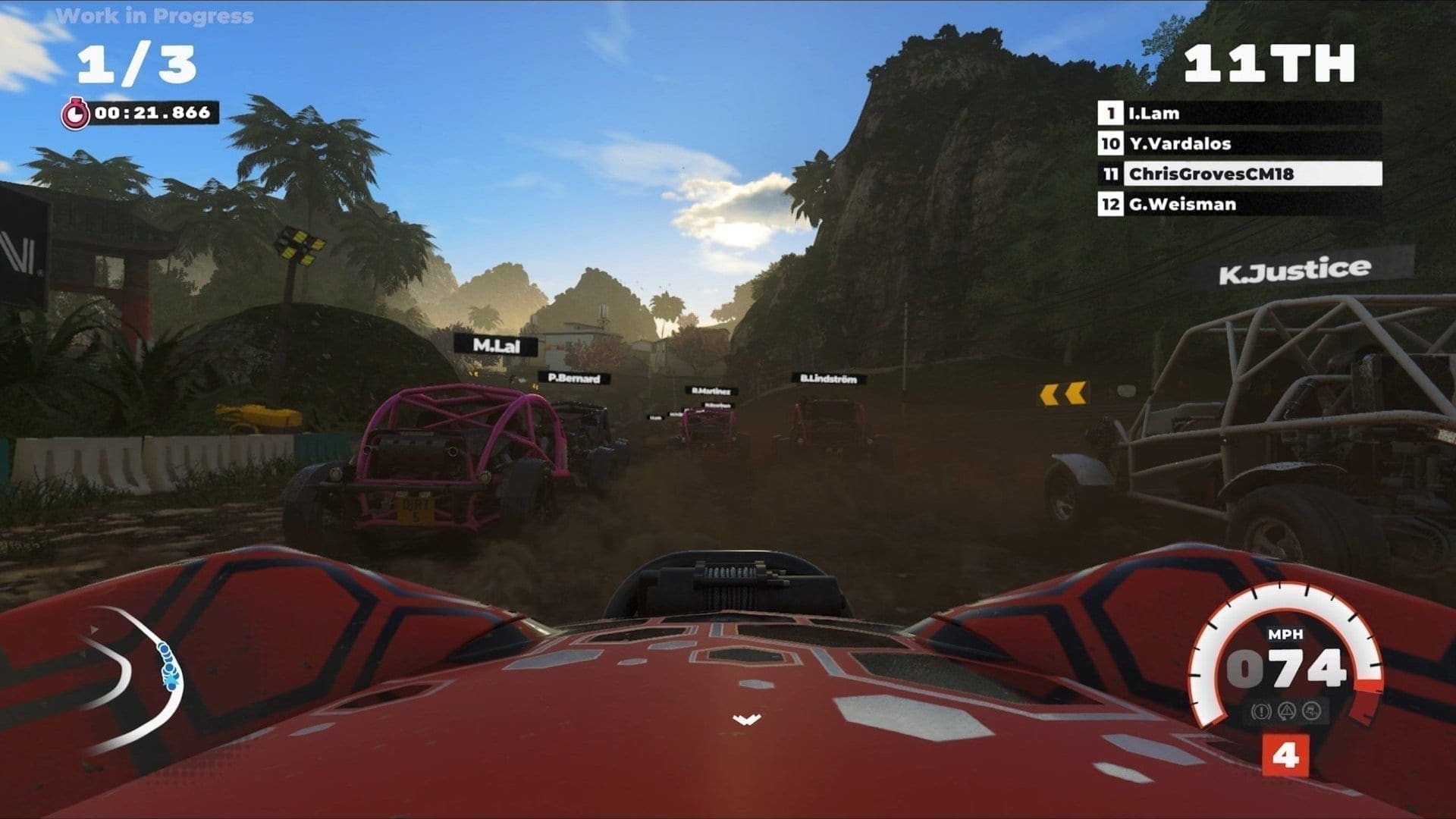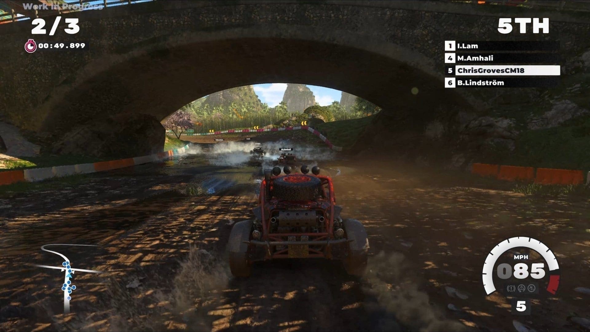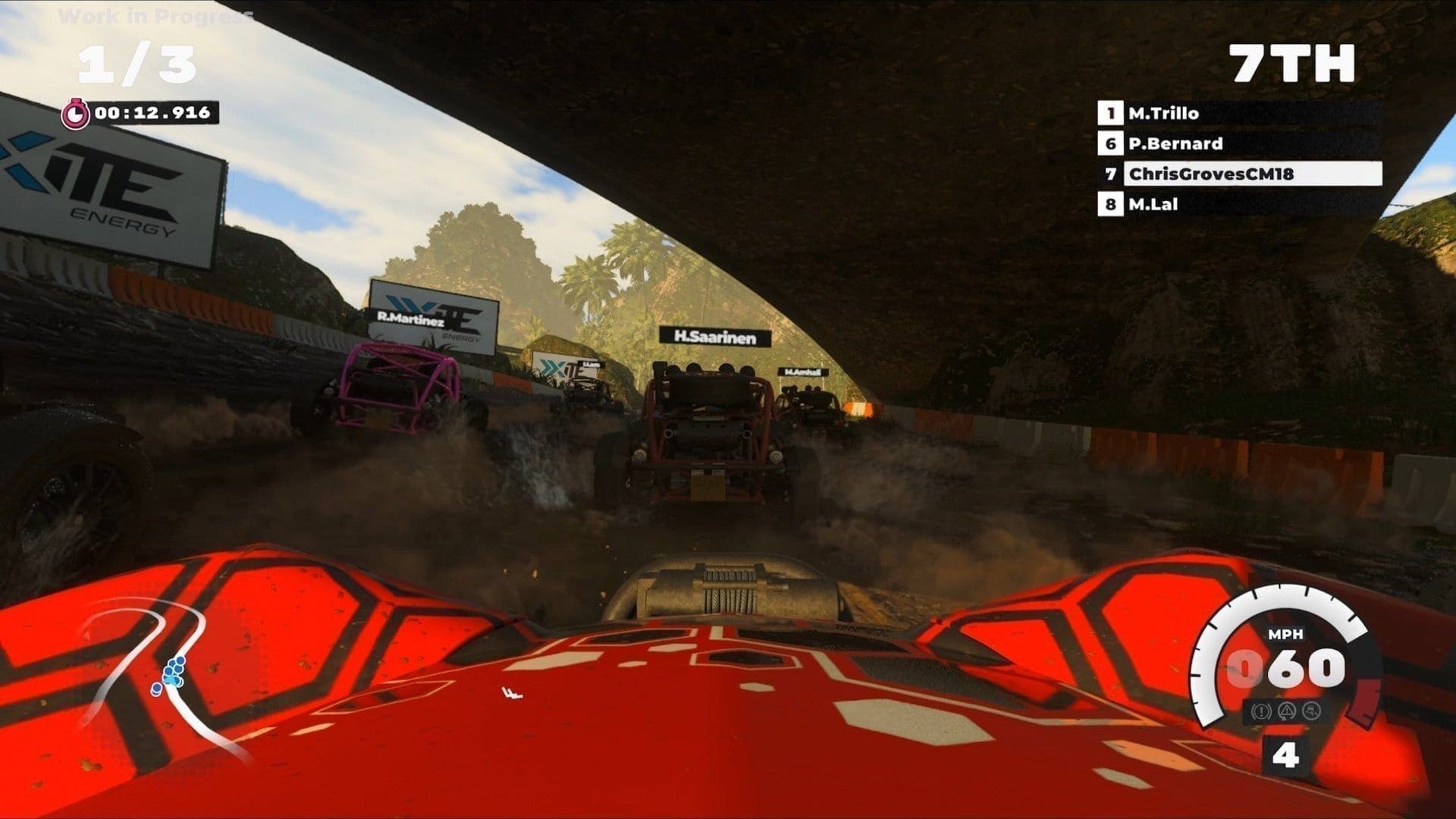 Die meiste Zeit geht es aber freilich darum, sich gegen Gegner zu erwehren. Die sind dabei lange nicht so aggressiv wie sie es in Onrush waren, wissen einen gepflegten Lackaustausch aber durchaus zu schätzen. Passend zum Arcade-Anspruch des Spiels darf also fleißig gerempelt und gedrängelt werden. Auch, weil es leider weder ein Schadensmodell noch den von Codemasters salonfähigen Rückspul-Button gibt. Finde ich persönlich beides schade. Begründet haben das Robert Karp (Development Director) und Michael Moreton (Lead Designer) in einem Interview zur ersten Preview seinerzeit damit, dass man in DiRT5 ja auch zu viert im Splitscreen in jedes Karriere-Event starten kann (das Ergebnis des besten Spielers wird für den Fortschritt herangezogen). Und da wollte man nicht, dass einer der vier früh im Rennen wegen einem Schaden chancenlos dem Feld hinterher kriechen muss. Löblich klar – aber DiRT5 wäre nicht das erste Spiel gewesen, dass im Multiplayer-Modus manche Funktionen einfach deaktiviert, die im Single-Player-Modus verfügbar sind: Und einige Beispiele dafür findet man sogar just in der DiRT-Serie selbst. Hm.