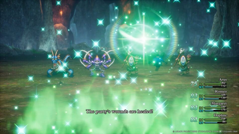 Neben den Arenakämpfen konnten wir aber auch frei in der Spielwelt herumlaufen und uns die modernen Anpassungsmöglichkeiten ansehen. Zum Beispiel kann die Geschwindigkeit der Kämpfe angepasst werden, was bei den vielen Zufallskämpfen echt ein Segen ist. Ihr könnt aber auch einfach eine Strategie festlegen und eure Charaktere alleine angreifen lassen. Moderner ist aber vor allem die Optik. Die Bezeichnung HD-2D steht für den Look des Games und sieht grandios aus. Die Mischung des Pixel-Looks und der stark detaillierten Welt passt perfekt zusammen und sorgt dafür, dass wir eine moderne Optik bekommen, ohne den Look des Originals zu verlieren.