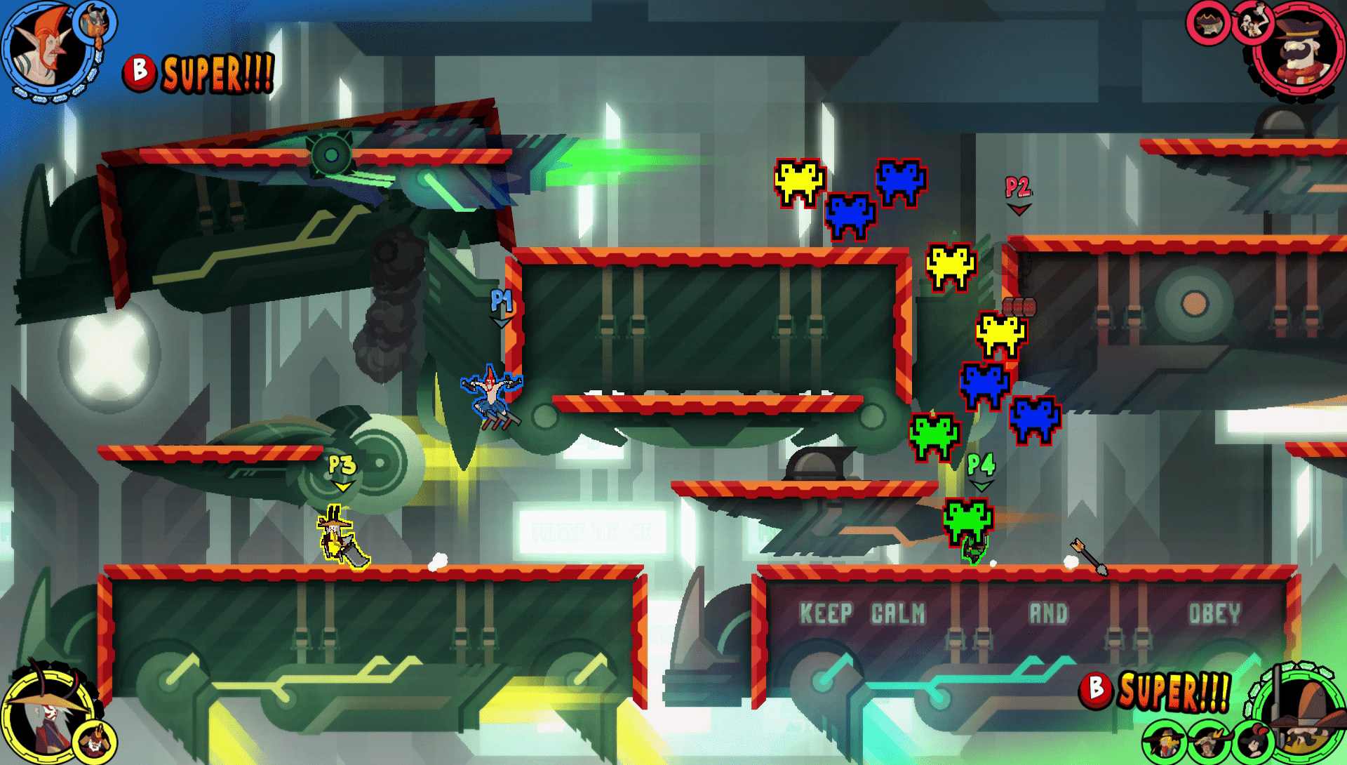 Jede einzelne dieser Dynastien besteht aus fünf verschiedenen Kämpfern, mit jeweils sehr individuellen Spezialfähigkeiten. Die meisten Spielfiguren haben einen oder zwei Nahkampf-Attacken, mit sehr geringer Reichweite. Dann gibt es welche die über Geschossangriffe verfügen. Diese werden von der Schwerkraft beeinflusst und dazu müssen etwa Bogenschützen, Axtwerfer oder Boomerangexperten ihre Wurfgeschosse immer wieder aufsammeln. Die dritte Kategorie sind die Kugelangriffe. Die sind sehr schnell und haben eine hohe Reichweite, weshalb es nur sehr wenige solcher Kämpfer gibt. Zusätzlich zu den verschiedenen Spezialfähigkeiten spielt natürlich auch die Bewegungsgeschwindigkeit und Sprungkraft eine wichtige Rolle. Die Stärken und Schwächen einer Dynastie ergeben sich nun aus der Summe der Eigenschaften der einzelnen Krieger. Das Haus Arthur ist etwa dank ihrer Rüstung sehr widerstandsfähig, dafür aber langsam. Die Cartwrongs sind auf Fernangriffe spezialisiert, die Nekoyama-Shi ist die beweglichste Dynastie im Spiel und die Sonnenkinder können sich selbst opfern, um damit die Super Feud-Anzeige zu füllen.