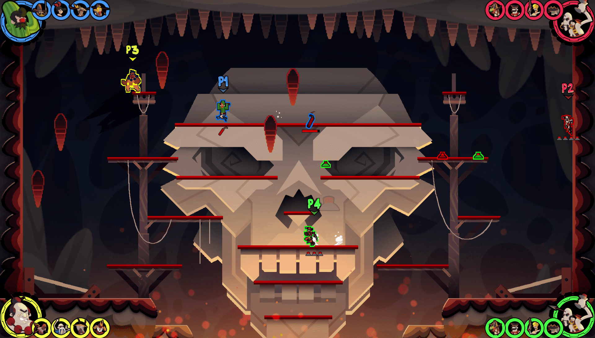 Aufgrund der verschiedenen Spezialfähigkeiten der einzelnen Charaktere kommt auch eine kleine taktische Note ins Spiel. Es bringt nur sehr wenig, lediglich eine einzelne Spielfigur gut zu beherrschen, man muss schon die Stärken und Schwächen aller Kämpfer kennen, um richtig gut zu werden. Dazu kommen auch noch interaktive Arenen, wie etwa ein rollender Zug, eine einstürzende Burg oder ein Totenkopf aus dessen Augen Lava strömt. Hat man dann doch einmal vorzeitlich alle Krieger verbraucht, dann darf man noch als Schutzgeist seine Gegner nerven, indem man etwa auf Knopfdruck den Bildschirm schwarz färbt oder kurzfristig die Steuerung einer gegnerischen Spielfigur beeinflusst.