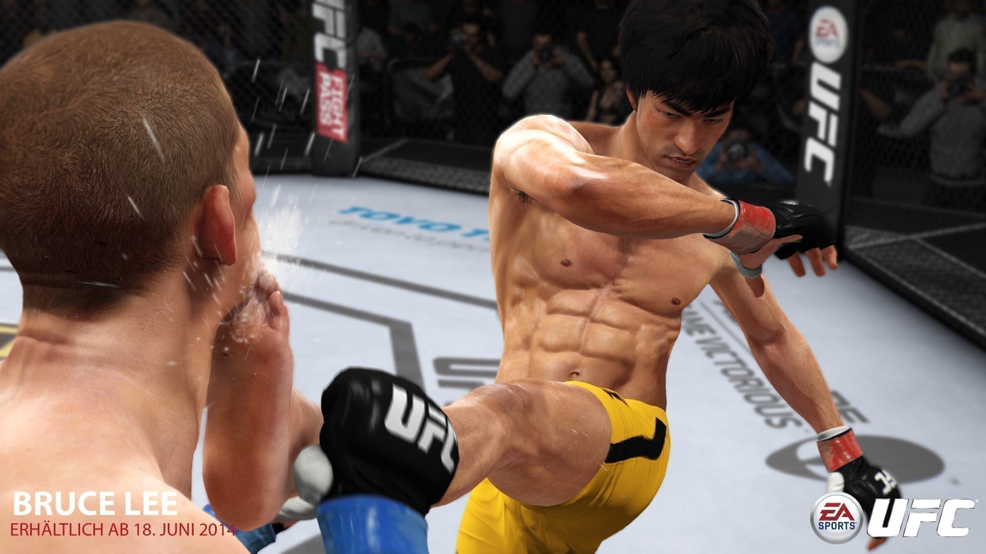 Instinktiv erst einmal ein paar unverbindliche Einzelkämpfe bestreitend, arbeitete ich mich durch die unzähligen Gewichtsklassen der UFC und staunte nicht schlecht über die Vollständigkeit der Lizenz, die EA hier wieder mal aufstellen konnte. Über zu wenige Kämpfer kann man sich, zumindest als Laie, in der Tat kaum beschweren. Außerdem wartet, zumindest als kostenpflichter DLC, der wahrscheinlich beste Martial Artist aller Zeiten auf euch: Bruce Lee höchstpersönlich. Wie auch immer hilft einem der hochkarätige Roster aber leider überhaupt nichts, wenn man im Oktagon keinen Plan hat und deswegen in trauter Regelmäßigkeit – man verzeihe mir die Ausdrucksweise – fett aufs Maul kriegt. Doch dann, die Erleuchtung: Der Karrieremodus!