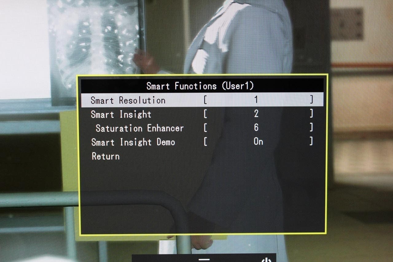 Neben der Blur Reduction ist „Smart Insight Demolition“ ein weiteres von EIZO entwickeltes und vor allem interessantes Feature zur Verbesserung der Bildqualität. Smart Insight Demolition analysiert die dunklen und zu hellen Bereiche eines Bildes und bessert jeden Pixel nach um den Kontrast zwischen einer Spielfigur und dem Hintergrund zu verbessern. Gegner in dunklen Bereichen werden so besser gesehen und das funktioniert auch wirklich gut ohne das Bild unwirklich werden zu lassen. Der Monitor hat einen eigenen „Smart Insight Demo“ Modus, den ihr über das Bildschirmmenü aktivieren könnt. Dieser teilt den Bildschirm in 2 Hälften und ihr könnt links die originale Darstellung des Spiels und rechts die „verbesserte“ Szene sehen. Über diverse Einstellmöglichkeiten lässt sich die Optimierung in 5 Stufen genau an eure Bedürfnisse anpassen. Zusätzlich kann hier auch noch mit dem „Saturation Enhancer“ und „Smart Resolution“ experimentiert werden. Bei der „Smart Resolution“ werden Bildinhalte auf Unschärfen, Bewegungsartefakte und Farbtöne hin untersucht und korrigiert. Bilder werden dadurch schärfer, klarer und wirken realistischer und das funktionierte bei unseren Tests auch wirklich gut. Wir haben dazu einige Fotos gemacht, die euch zeigen sollen wie das etwa aussieht.