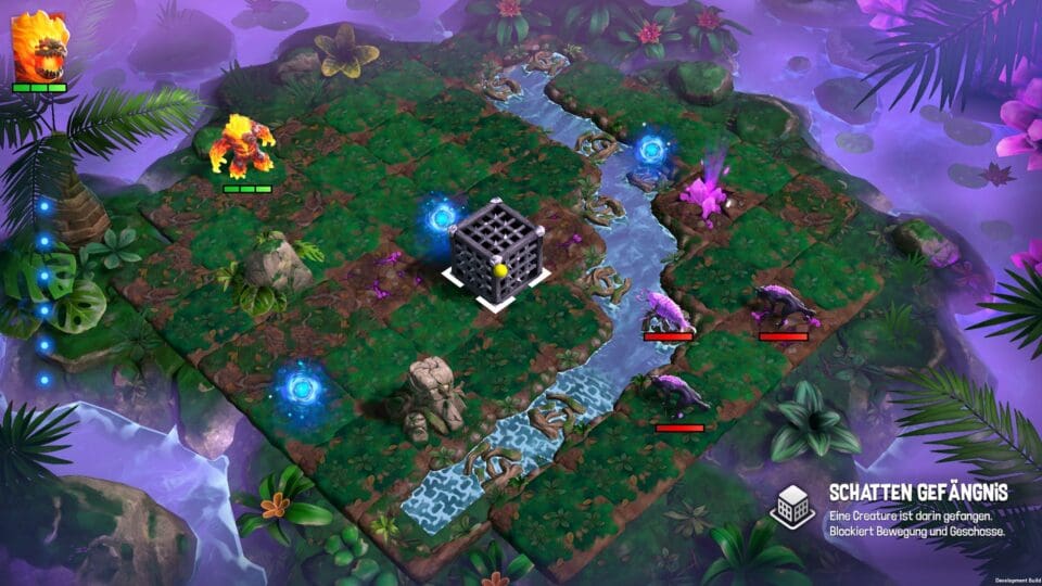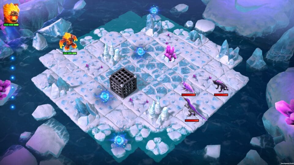 Mit eurer Spielfigur erkundet ihr die vier frei zugänglichen und sehr abwechslungsreichen Schauplätze von Eldrador. Trefft ihr dabei auf einen Gegner dann wechselt das Game in den rundenbasierten Taktik-Modus, bei dem ihr eure Kreaturen abwechselnd auf einem schachbrettartigen Spielfeld verschieben dürft. Jede Figur verfügt dabei über individuelle Eigenschaften und Fähigkeiten. Da wären zunächst die Lebens- und Bewegungspunkte. Sinkt erstere auf null, dann wird die Kreatur für die restliche Partie ausgenockt und startet darüber hinaus im nächsten Gefecht mit einem geringeren Lebensenergiebalken. Zum Attackieren kann zwischen einer normalen sowie einer Spezialfähigkeit ausgewählt werden. Zweitere verursacht in der Regel zwar etwas mehr Schaden, benötigt dafür aber Mana. Dieses muss auf dem Spielfeld zuvor eingesammelt werden. Darüber hinaus besitzt jede Kreatur auch individuelle, passive Eigenschaften, welche im Kampf ebenfalls sehr nützlich sein können.