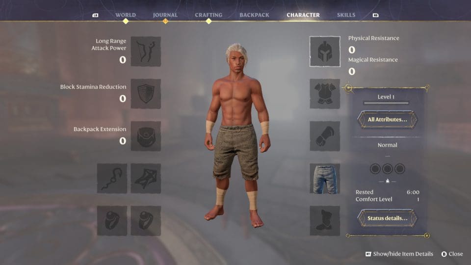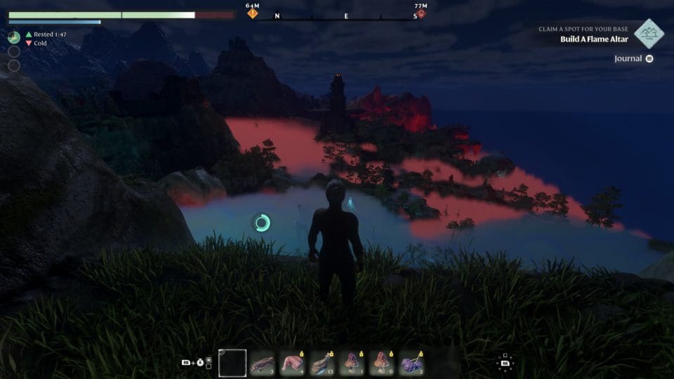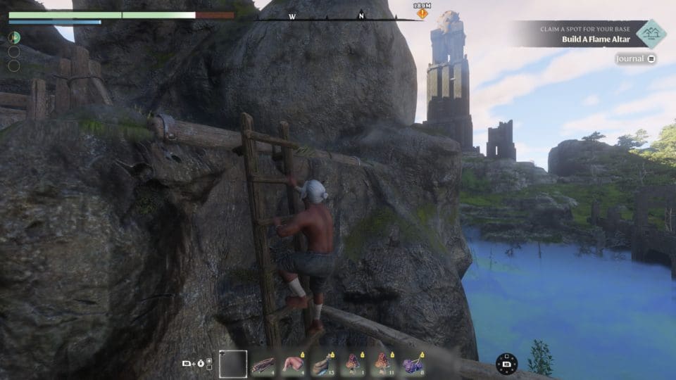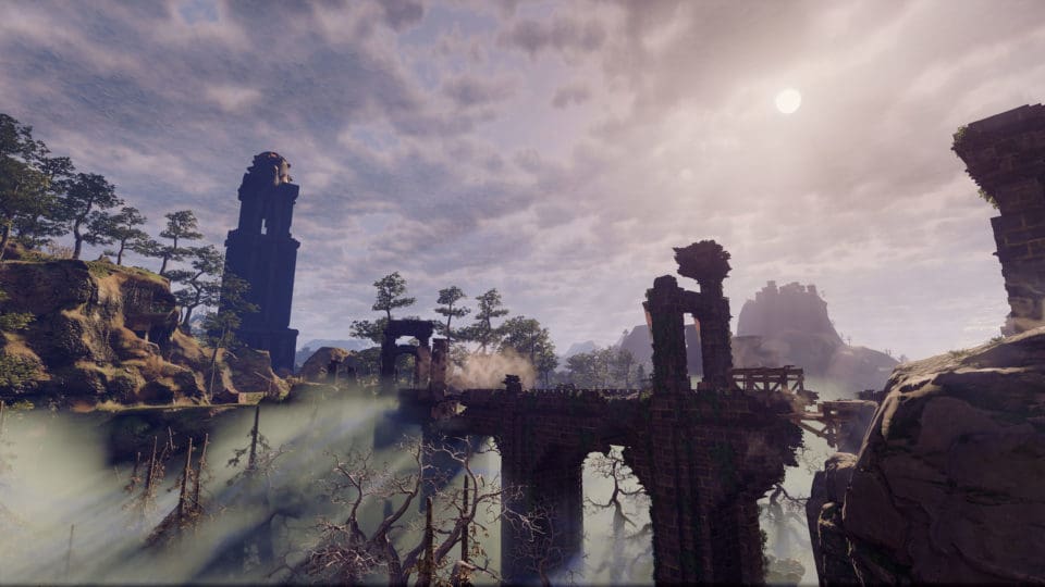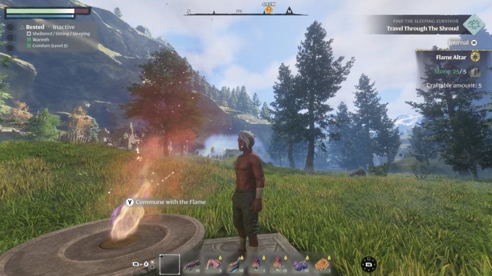 Wir spielen keinen normalen Menschen, sondern einen „Flameborn“ (aus der Flamme geborenen), und unsere Aufgabe besteht darin, das Land Embervale von dem schrecklichen Nebel (Shroud), der das Land überzogen hat, zu befreien. Der Nebel ist offensichtlich das Ergebnis von Handlungen unserer Vorfahren, die in ihrer Gier und Dummheit ihren eigenen Untergang herbeigeführt haben. Soviel zur Hintergrundgeschichte. Das Gameplay selbst ist nicht übermäßig innovativ, dafür ist es aber überaus gut gemacht. Wir können all das, was wir in vielen anderen Survival Spielen auch können – durch die Gegend laufen, schleichen, springen, zuschlagen, blocken, zaubern und überall Dinge einsammeln, mit denen wir dann neue, tolle Dinge herstellen und bauen können. Sterben ist nicht so extrem schmerzhaft, ihr erwacht am letzten Speicherpunkt und könnt euch euer Inventar am Ort des Ablebens wieder holen. Unser Lager schaut bald mehr aus wie eine Burg, und wir lernen Fähigkeiten wie mit kleinen Flügeln am Rücken durch die Luft zu gleiten oder uns mit einem Kletterhaken durch die Gegend zu schwingen. Die Landkarte wird automatisch erstellt, die Quests werden vom Spiel notiert und sind jederzeit einsehbar. Die Charakterentwicklung ist recht komplex, es steht ein umfangreicher Fertigkeitenbaum zur Verfügung. Doppelsprung oder doch lieber ein neuer Zauberspruch? Wollen wir ein Fernkämpfer, Heiler, Zauberer oder doch lieber Attentäter werden? Die Wahl liegt bei uns. Und was ziehen wir heute wieder an? Helm, Handschuh, Hose, Schuhe, eine Jacke, ein Schild…