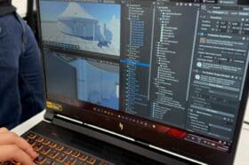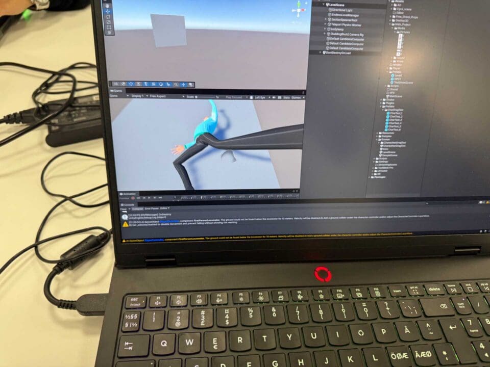 In der anschließenden Vor-Ort-Woche wurde der Arbeitsalltag kleiner Entwicklerteams simuliert. Der Ablauf orientierte sich an studioähnlichen Strukturen mit Daily Stand-ups, Projektarbeit, Coaching, XR-Usability-Tests, Retrospektiven und Präsentationen. Entwickelt wurde in Unity, kommuniziert unter anderem über Discord, für die XR-Arbeit kamen Headsets wie Meta Quest 2 und Meta Quest 3 zum Einsatz.