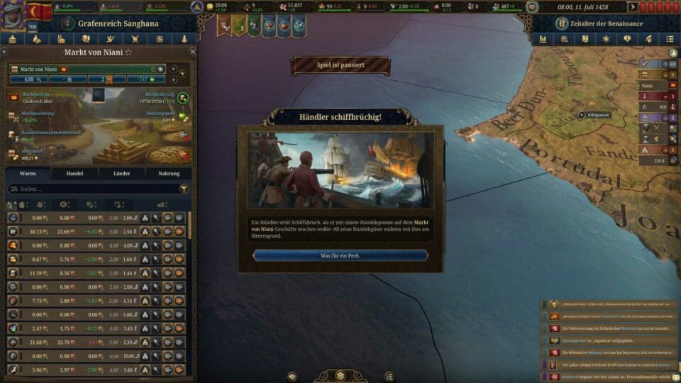 Ein Herzstück von Europa Universalis V sind die zahllosen historischen Ereignisse, die der Spielwelt Dynamik und Authentizität verleihen. Paradox Tinto hat hier enorm viel Feinarbeit geleistet: von der Pest des 14. Jahrhunderts über den Fall Konstantinopels und den Aufstieg der Kolonialreiche bis hin zu den großen Revolutionen des 18. Jahrhunderts – all diese Umbrüche werden nicht nur als simple Textfenster präsentiert, sondern greifen tief in das Spielgeschehen ein.