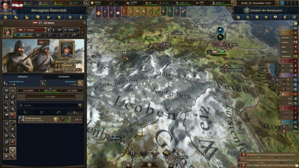 Auch die Wirtschaft wurde umfassend überarbeitet. Produktionsketten, Handelsrouten und Ressourcenflüsse greifen enger ineinander, während regionale Spezialisierungen stärker ins Gewicht fallen. Eine wohlhabende Handelsstadt wie Venedig spielt sich völlig anders als ein landwirtschaftlich geprägtes Reich. Das erinnert an die ökonomische Detailliebe aus Victoria 3, bleibt aber eng mit der geopolitischen Ebene verknüpft.