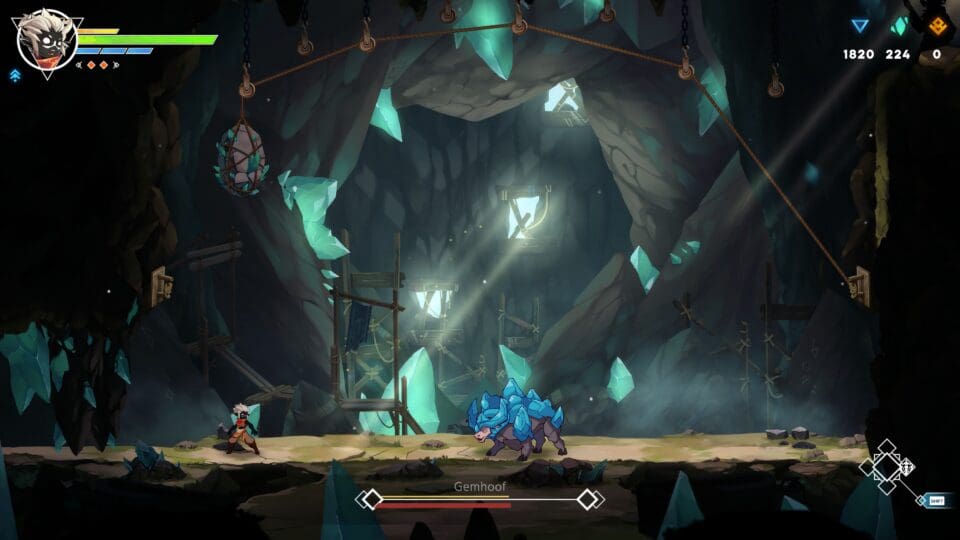 Fallen Tear: The Ascension spielt sich wie ein typisches Metroidvania. Umfangreiche, miteinander verbundene Level voller versteckter Bereiche. Immer wieder die typischen Hindernisse, die erst mit einer neuen Fertigkeit überwunden werden können – und zu denen man oft zurück gehen muss (Backtracking). Dazu eine ordentliche Vielfalt an Gegnern mit unterschiedlichen Eigenschaften. Ohne Sprungsequenzen und den von mir so sehr geliebten Spitzen (die aber nur unangenehm, und nicht sofort tödlich sind) kommt ihr natürlich auch nicht weit. Manchmal müsst ihr auch kleine Rätsel lösen. Dazu gibt es gut inszenierte Bosskämpfe. Zusätzlich werdet ihr auf euren Reisen durch die Welt ein wenig mehr Charakteren als üblich begegnen – Raoah besteht nicht nur aus euch, einem Händler und ein paar Gegnern. Dazu kommt die typische Weiterentwicklung eurer Spielfigur mit kleinen Statistikverbesserungen und spielverändernden neuen Fähigkeiten. Und dann gibt es natürlich noch die vielen Leute, die sich euch anschließen, und die euch an bestimmten Stellen – nicht nur im Kampf – beiseite stehen. Ein JRPG ist das nicht, aber dafür ein überaus gutes Metroidvania mit ein wenig mehr Story als gewohnt. Wenn die restlichen zwei Drittel des Spieles genauso gut werden wie der nun veröffentlichte erste Akt, dann spielt Fallen Tear: The Ascension in der Oberliga des Metroidvania-Genres mit!